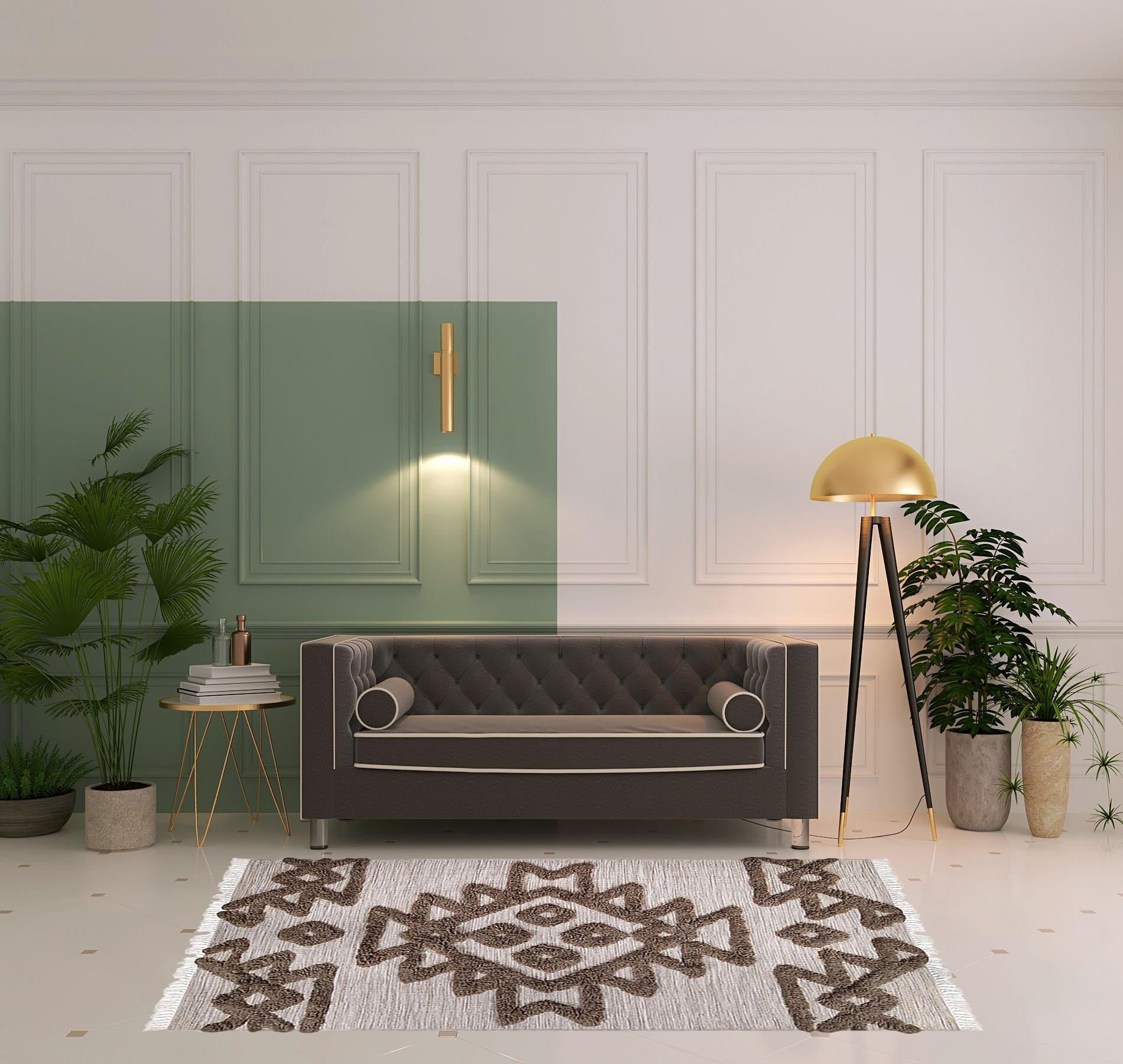 Add great coloration and comfortable texture to your space with this 5' x 8' sand and taupe wool geometric flatweave handmade stain resistant area rug with fringe. This rectangle shaped rug features a geometric design in sand and taupe to give it visual interest. A classic shape marries with good looking design for your space Made in Turkey, this rug offers high quality combined with good looking designer sensibilities. Ideal for spaces with kids and pets, this rug is stain resistant to help repel stains and spilled liquids. Tassel ends bring a timeless and fashionable look to your interior. Place this area rug against a hardwood or tile floor and it will enliven your living space with style and sophistication. 1.38" H x 60" W x 96" D