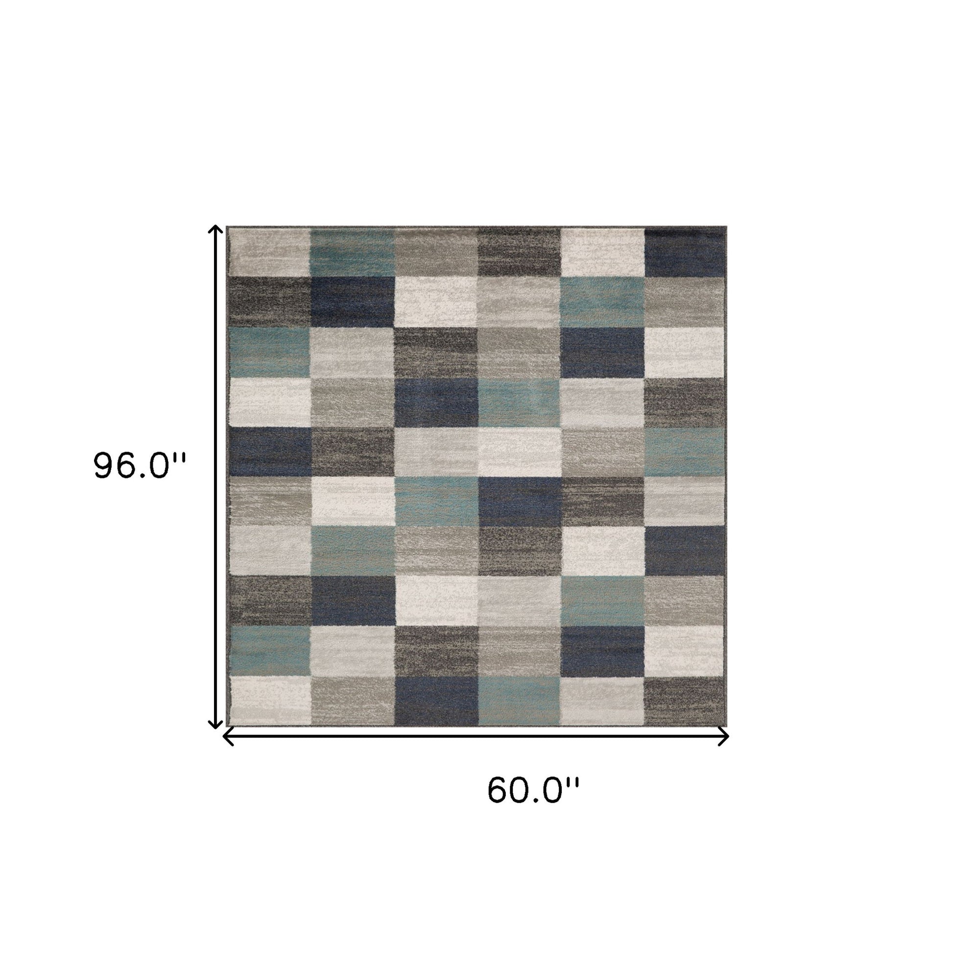 5' X 8' Teal And Gray Geometric Power Loom Stain Resistant Area Rug