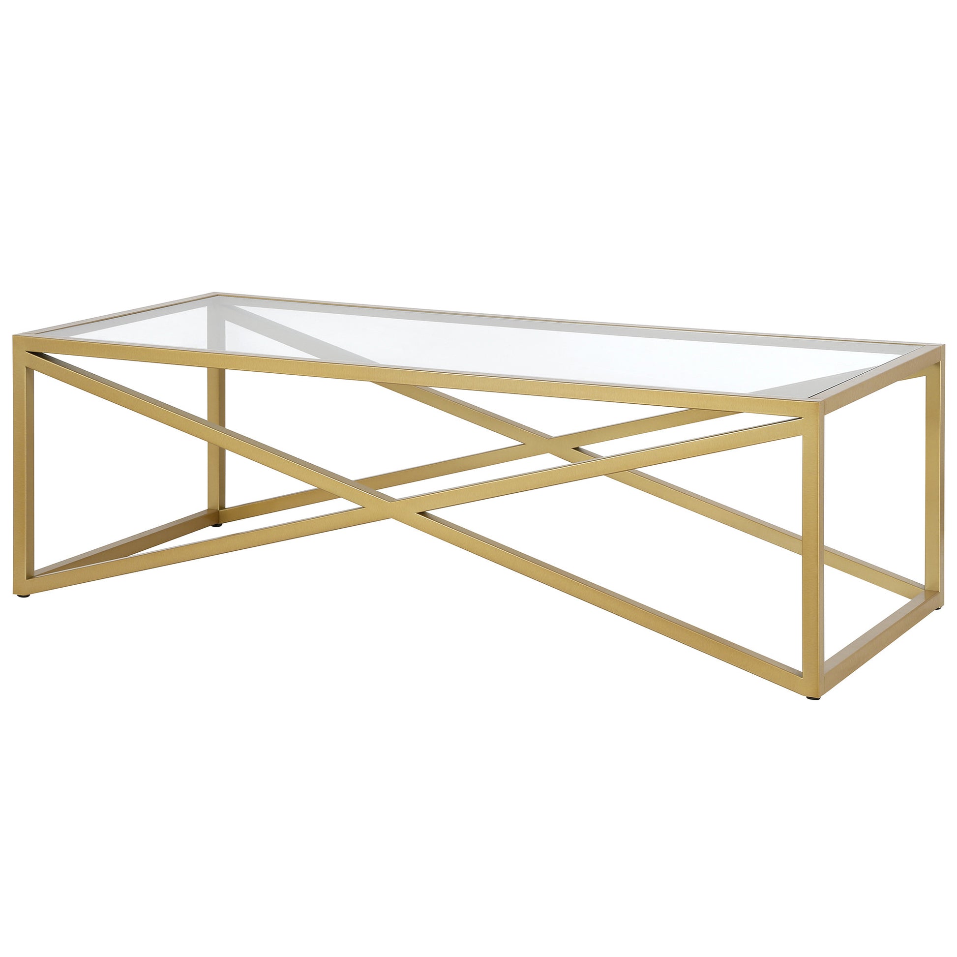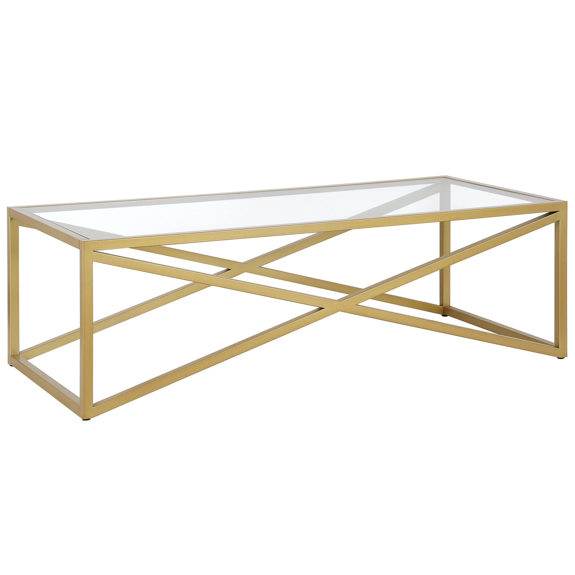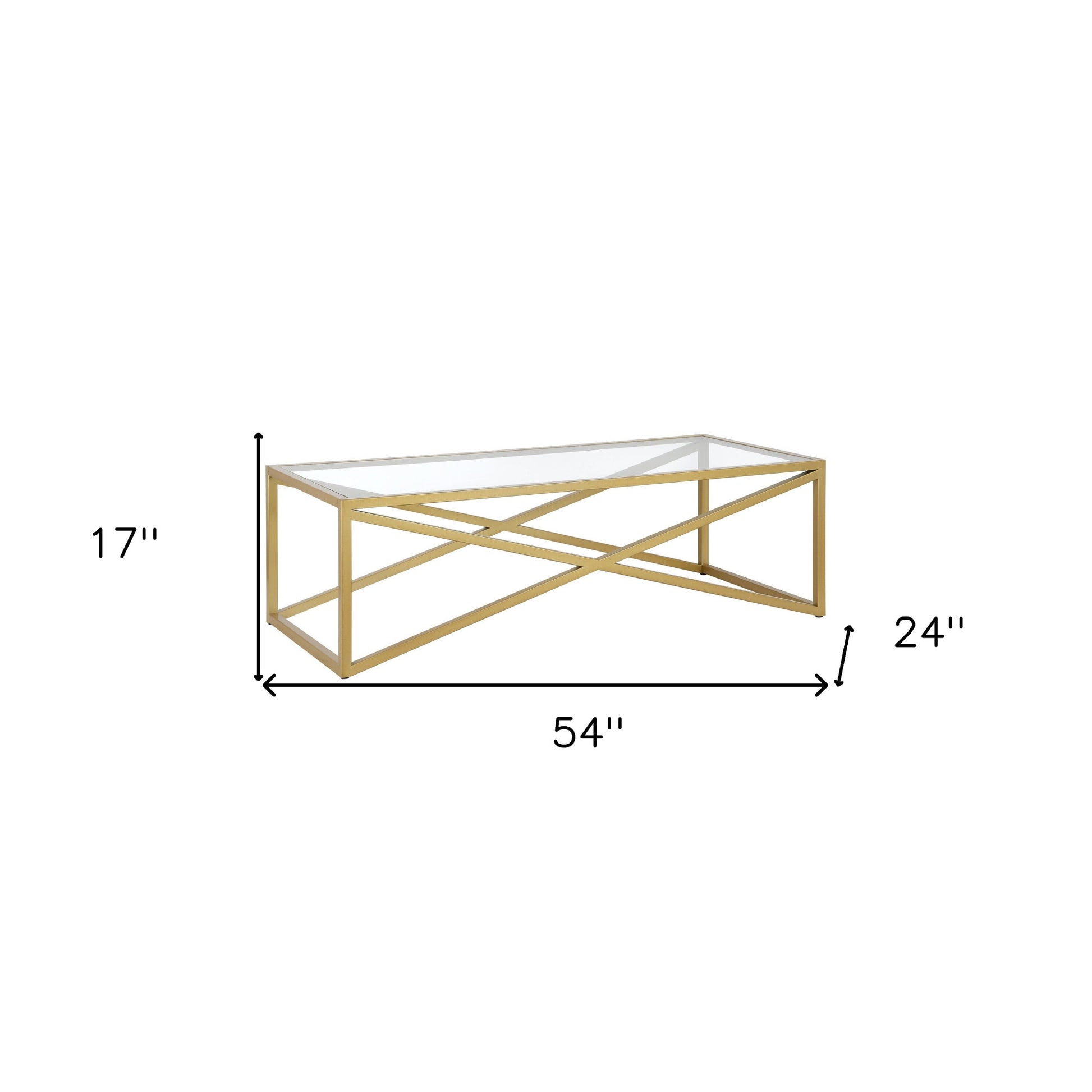 Make your living room or family room really stand out with this 54-inch gold glass and steel coffee table. A solid gold steel frame is finished off with a matching gold glass top, giving this table a chic monotone look. This classic rectangular table will be a great accent in any room it has a fresh design that will definitely breathe some fresh air into your interior. This coffee table is the sturdy, reliable and stylish answer to your living room needs. 17-inch H x 54-inch W x 24-inch D