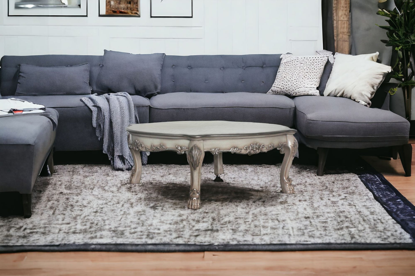 Made of solid and manufactured wood, the bone coloration throughout gives this piece an updated and refreshing look. This rectangular table is an classic yet updated way to accent your room. It has a fresh design that will definitely breathe some fresh air into your interior. This coffee table is the sturdy, reliable and stylish answer to your living room needs. 20-inch H x 54-inch W x 47-inch D
