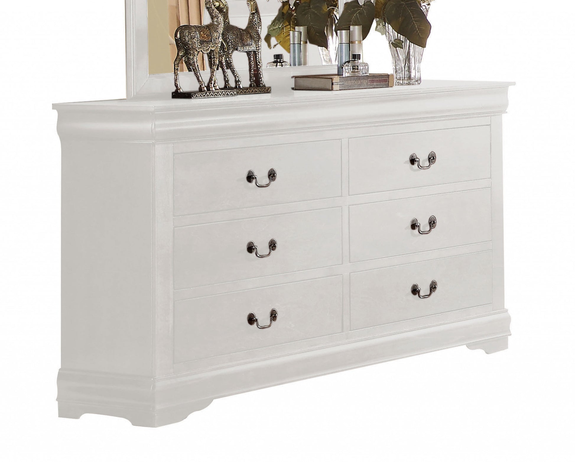 57" White Solid Wood Six Drawer Double Dresser