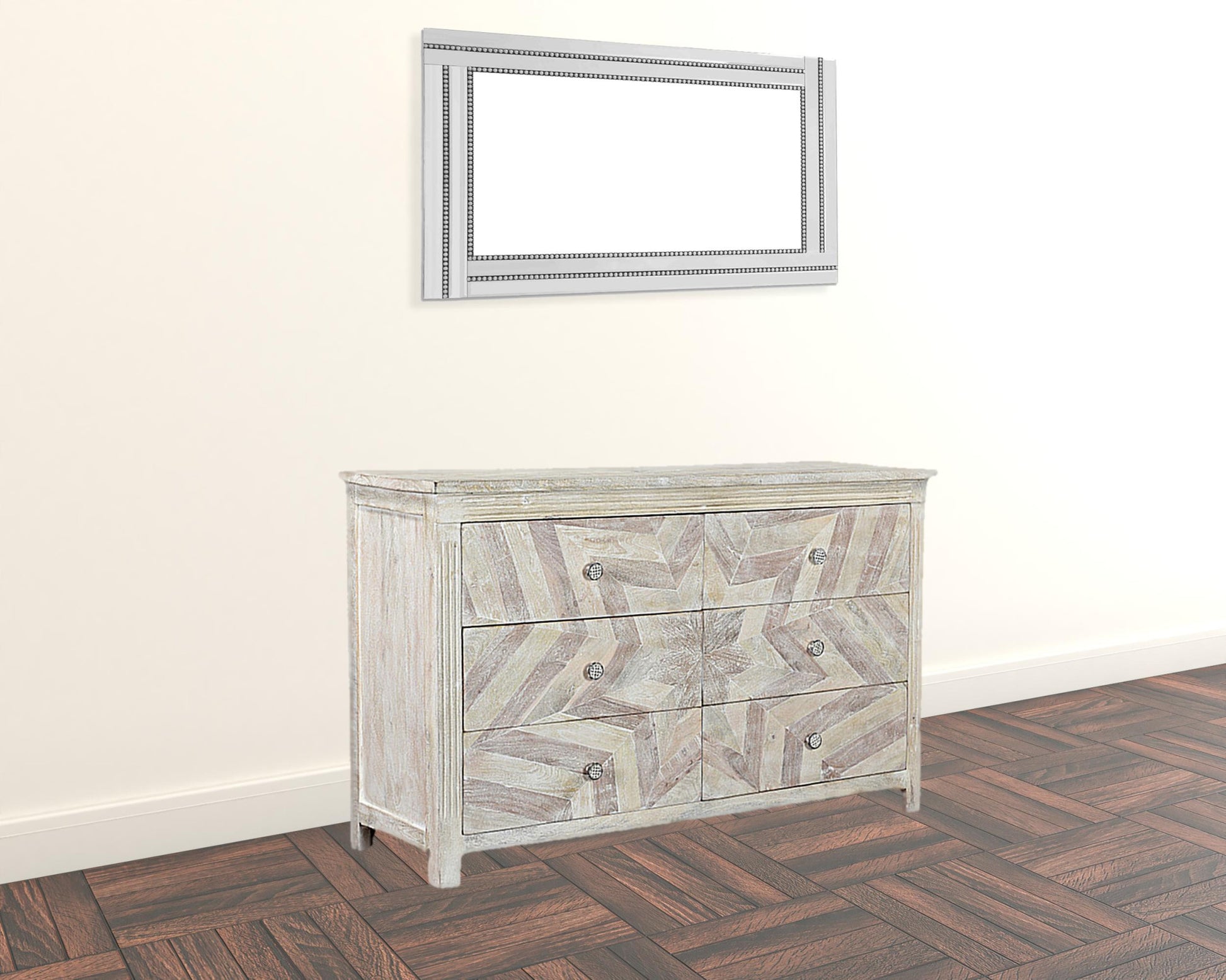 57" White Wash Solid Wood Six Drawer Double Dresser