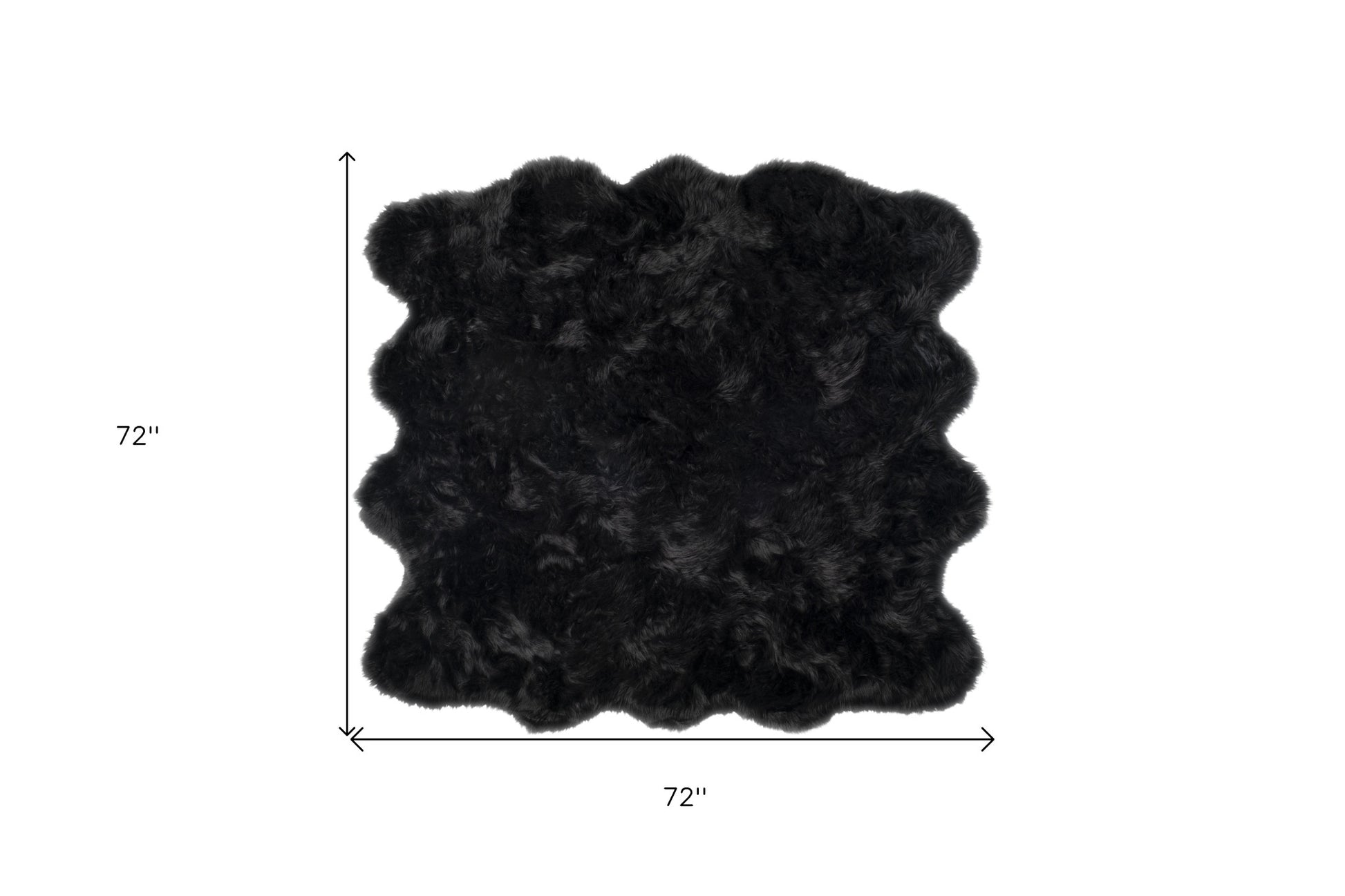 6' X 6' Black Faux Fur Washable Non Skid Area Rug