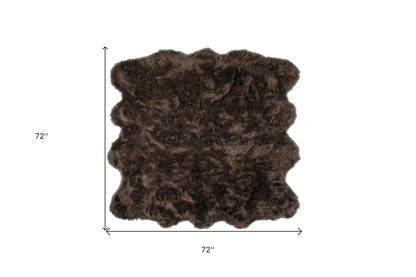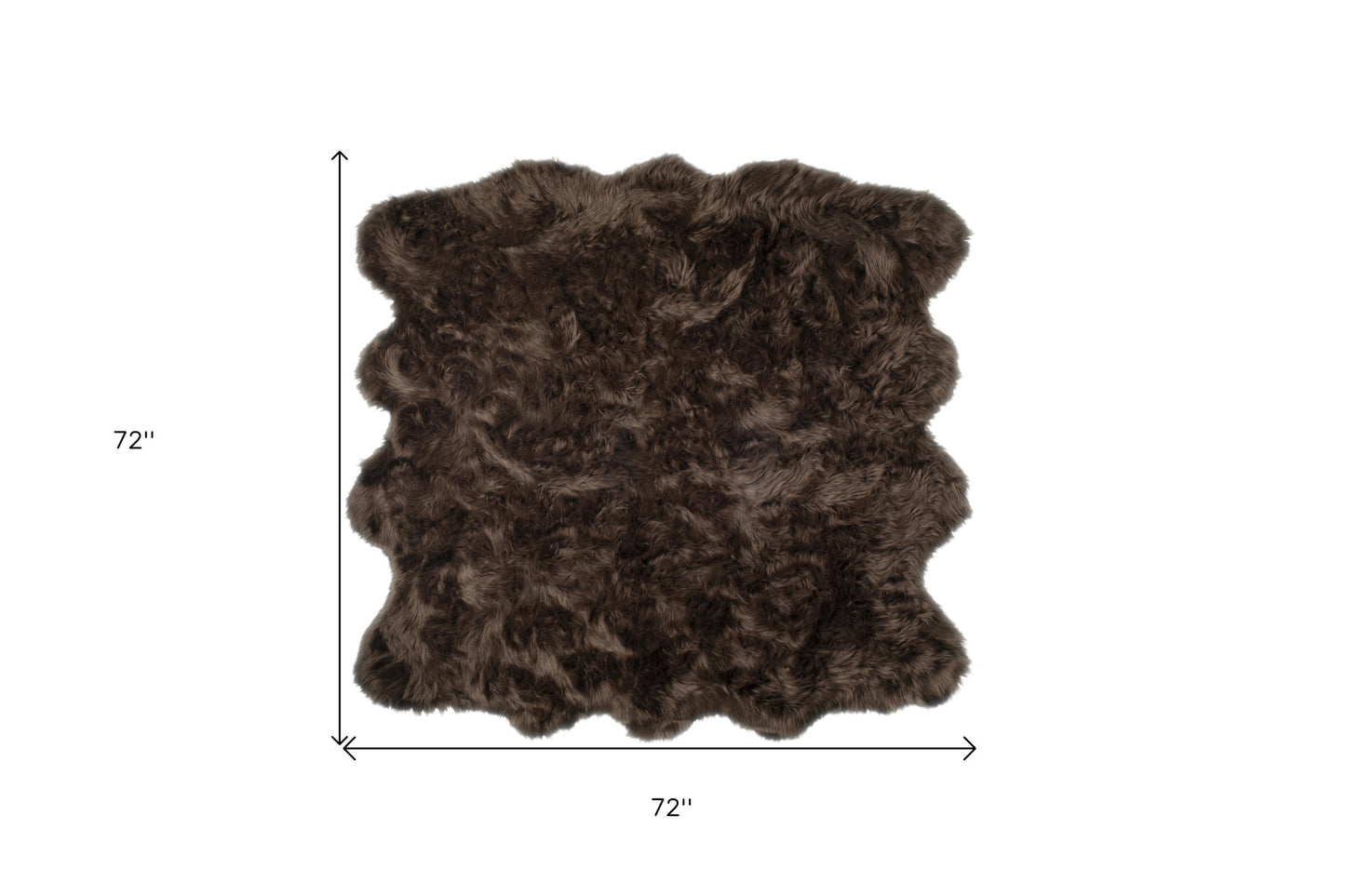 6' X 6' Chocolate Faux Fur Washable Non Skid Area Rug