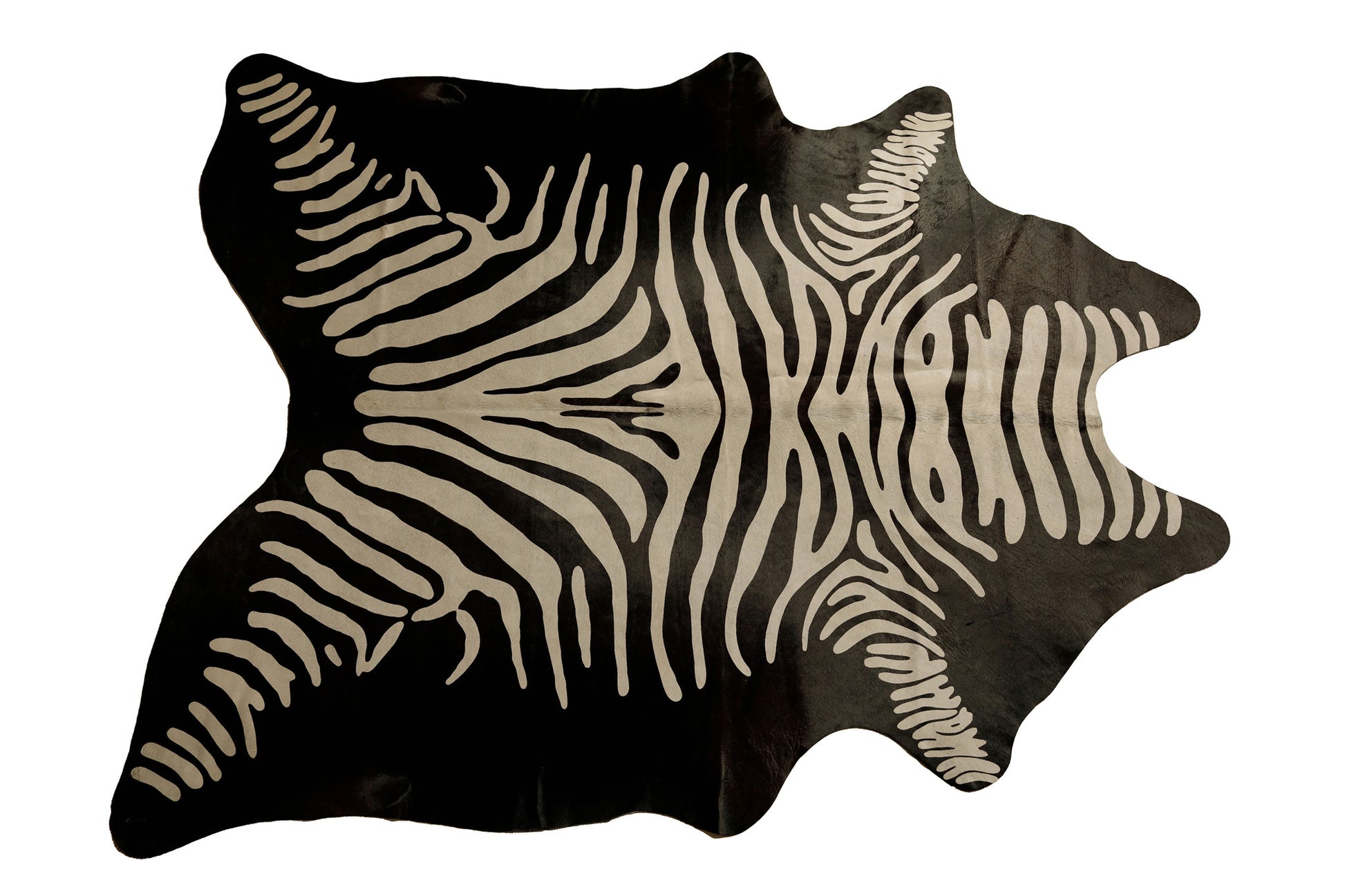 Add great coloration and comfortable texture to your space with this 6' x 7' off white and black zebra print cowhide handmade area rug. This novelty shape rug in off white and black features a animal print that combines a good looking print with a unique shape. The mix of shape, color, and design gives this rug refreshing visual interest. Handcrafted by skilled artisans, this natural cowhide rug is genuine and unique. No two will be exactly alike. Area Rugs help to give warmth and sense of home to your space. 0.25" H x 72" W x 84" D