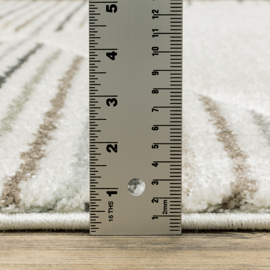 6' X 9' Beige Grey Sage Green Pale Blue Brown And Charcoal Geometric Power Loom Stain Resistant Area Rug