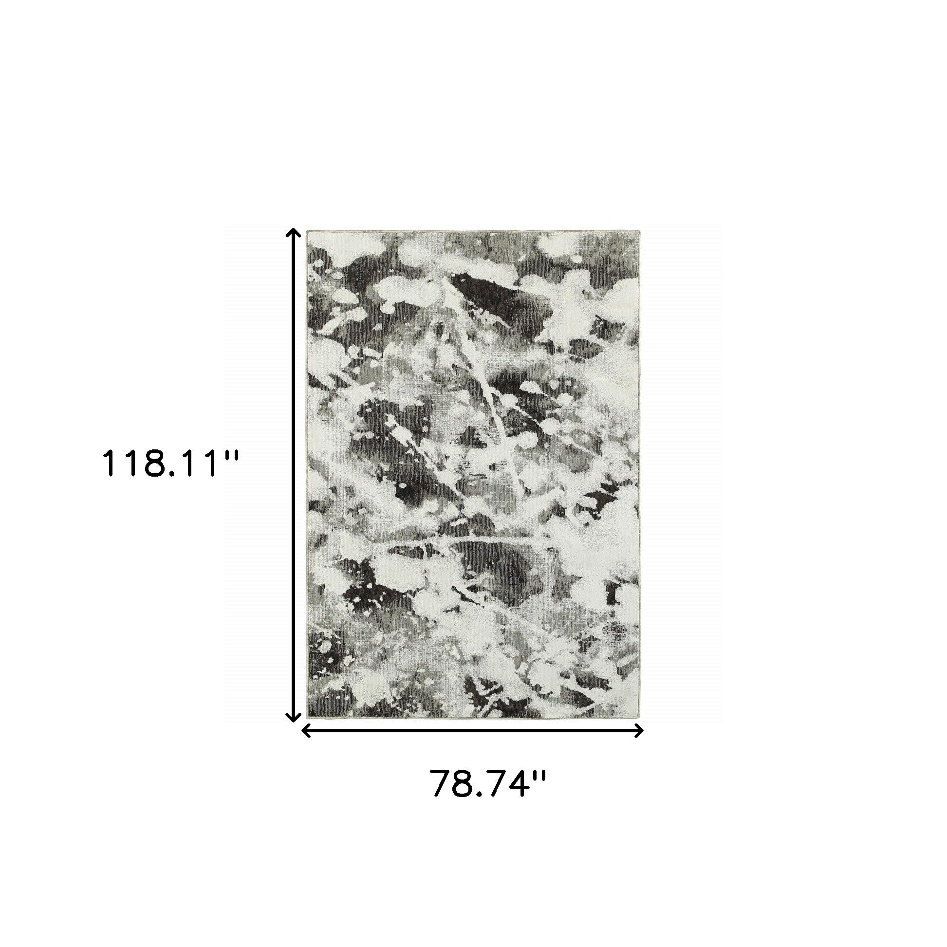 This 6' x 9' charcoal and white abstract power loom stain resistant area rug, is a great way to add warmth to a room. This rectangle shaped rug features a abstract design in charcoal and white to give it visual interest. A classic shape marries with good looking design for your space Ideal for spaces with kids and pets, this rug is stain resistant to help repel stains and spilled liquids. Place this area rug against a hardwood or tile floor and it will enliven your living space with style and sophistication. 0.55" H x 78.74" W x 118.11" D