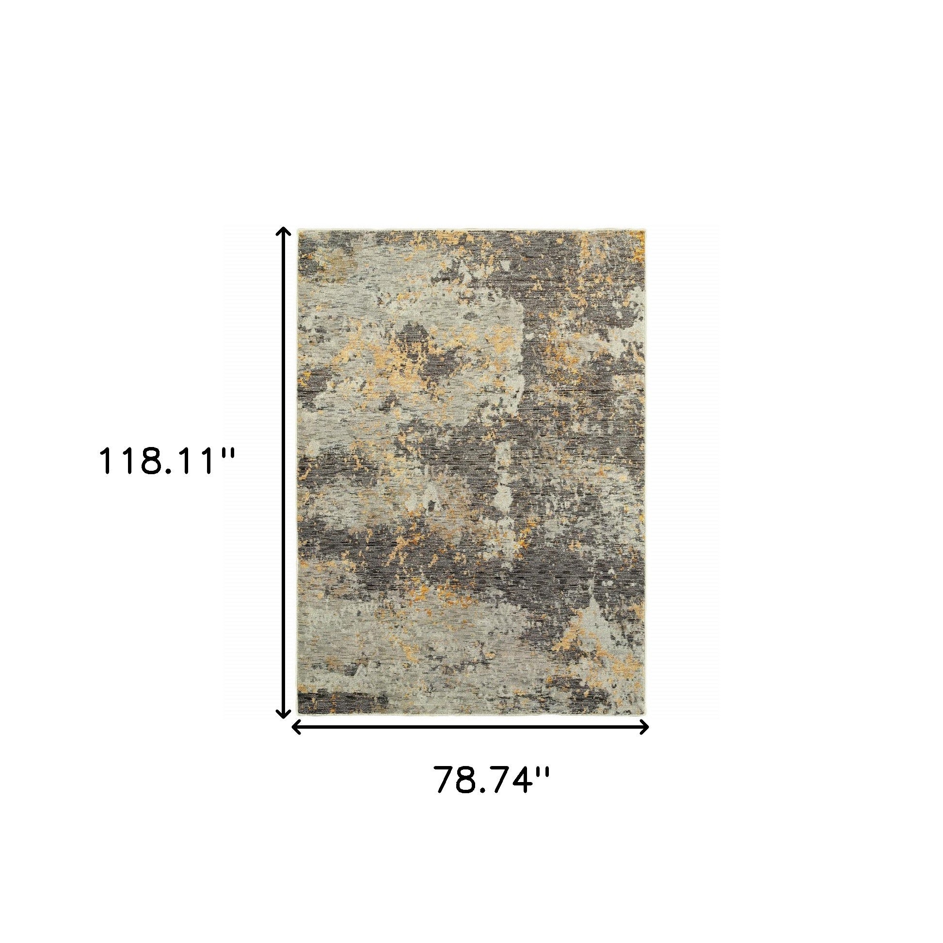6' X 9' Grey And Gold Abstract Power Loom Stain Resistant Area Rug