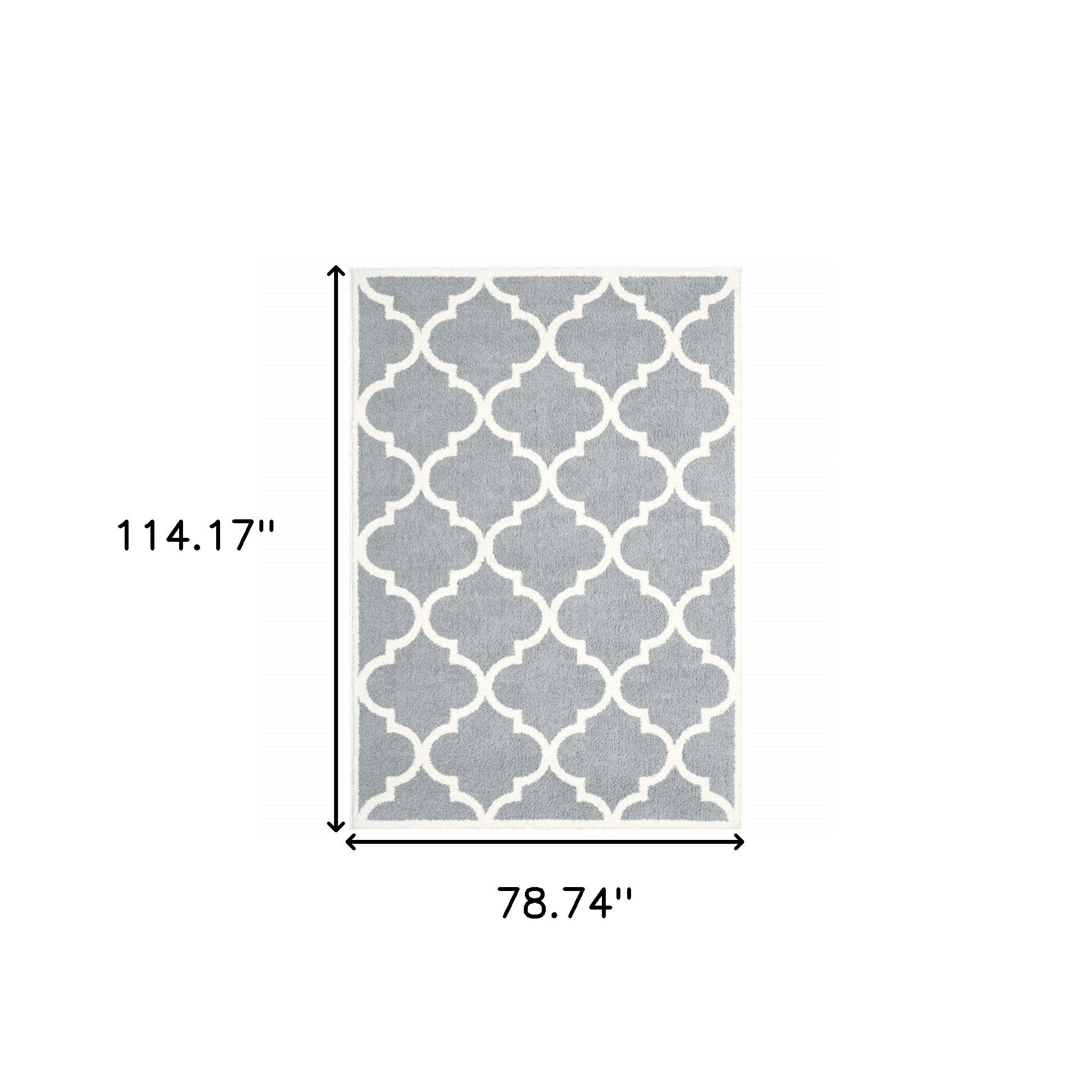 6' X 9' Grey And Ivory Geometric Shag Power Loom Stain Resistant Area Rug