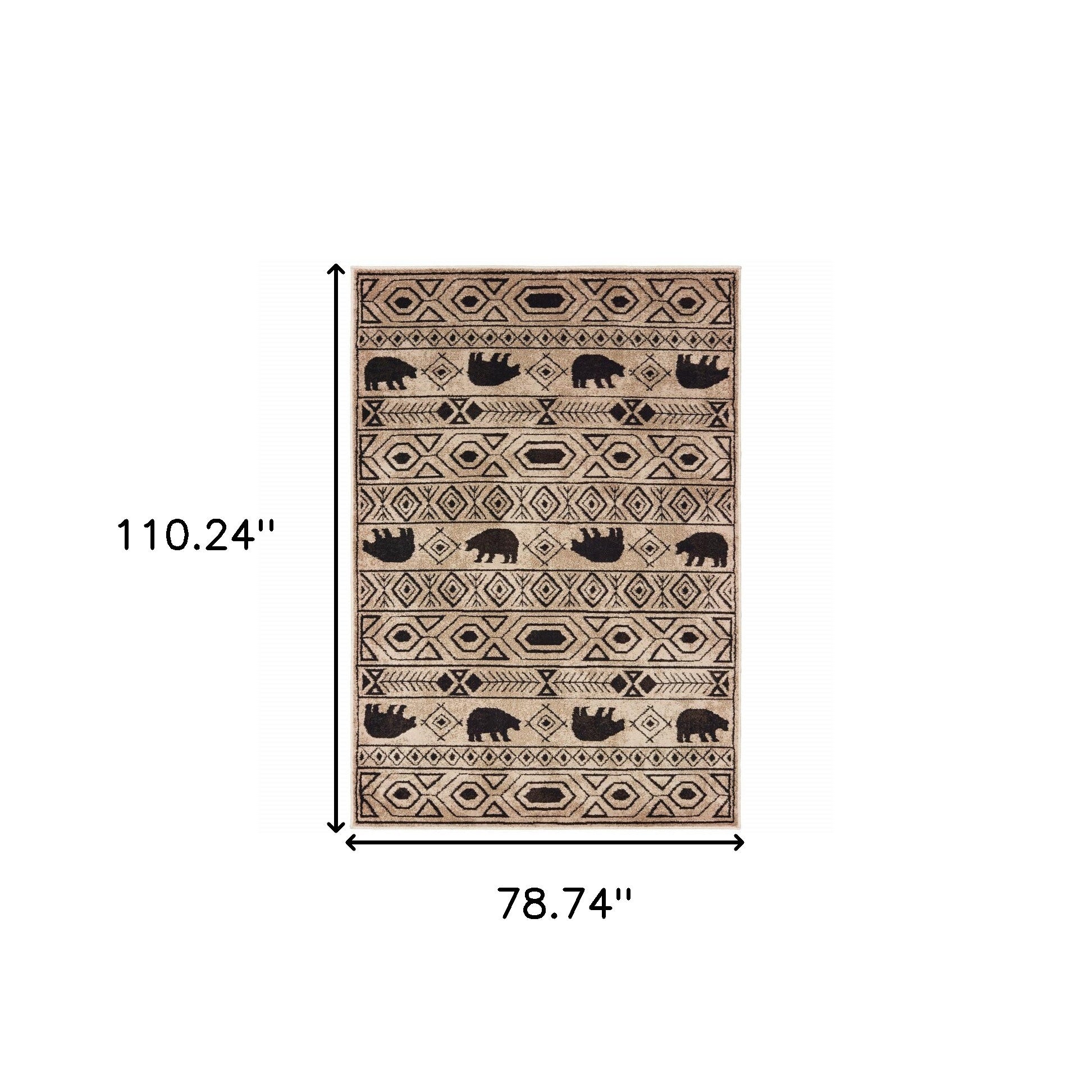 6' X 9' Ivory And Black Southwestern Power Loom Stain Resistant Area Rug