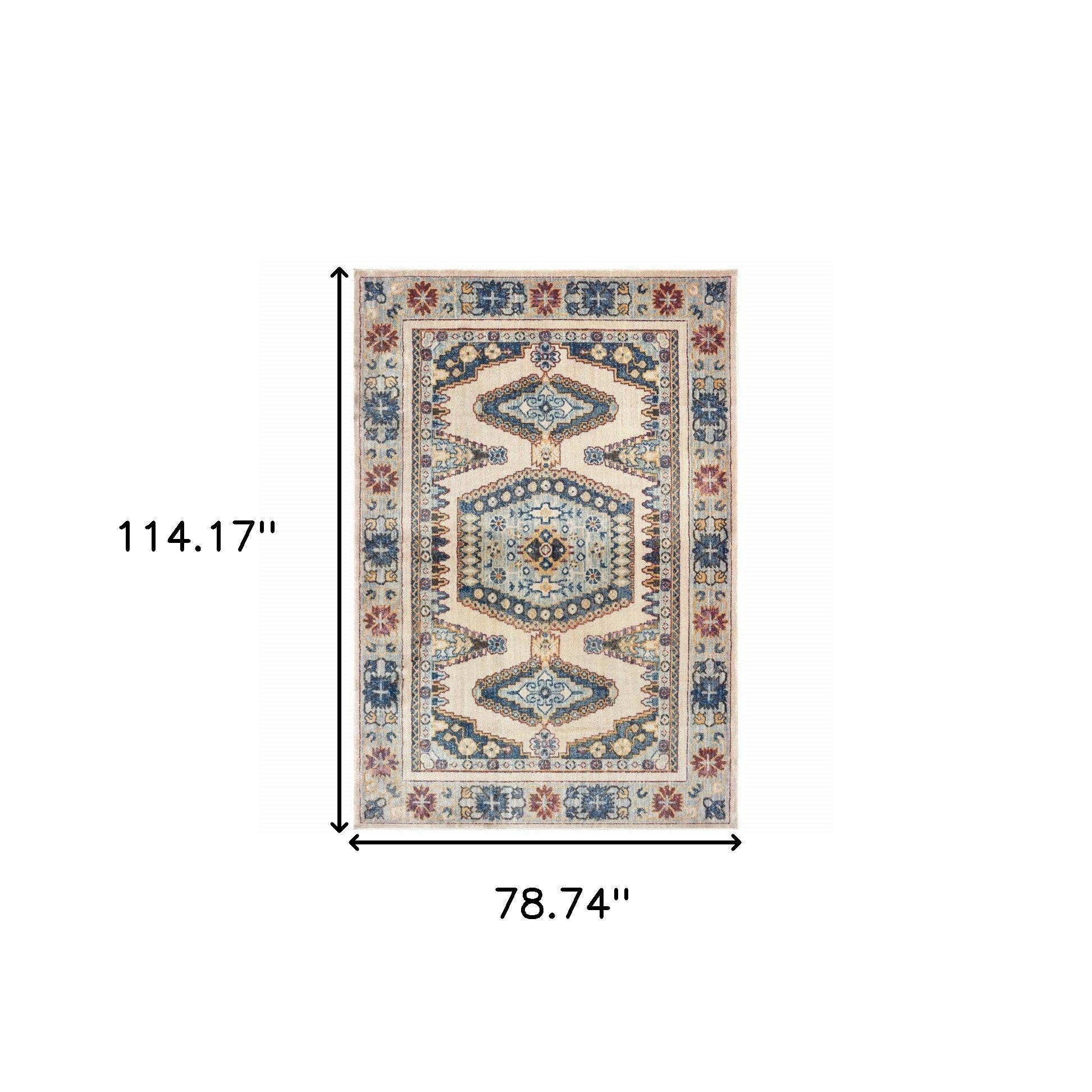 6' X 9' Ivory And Blue Oriental Power Loom Stain Resistant Area Rug