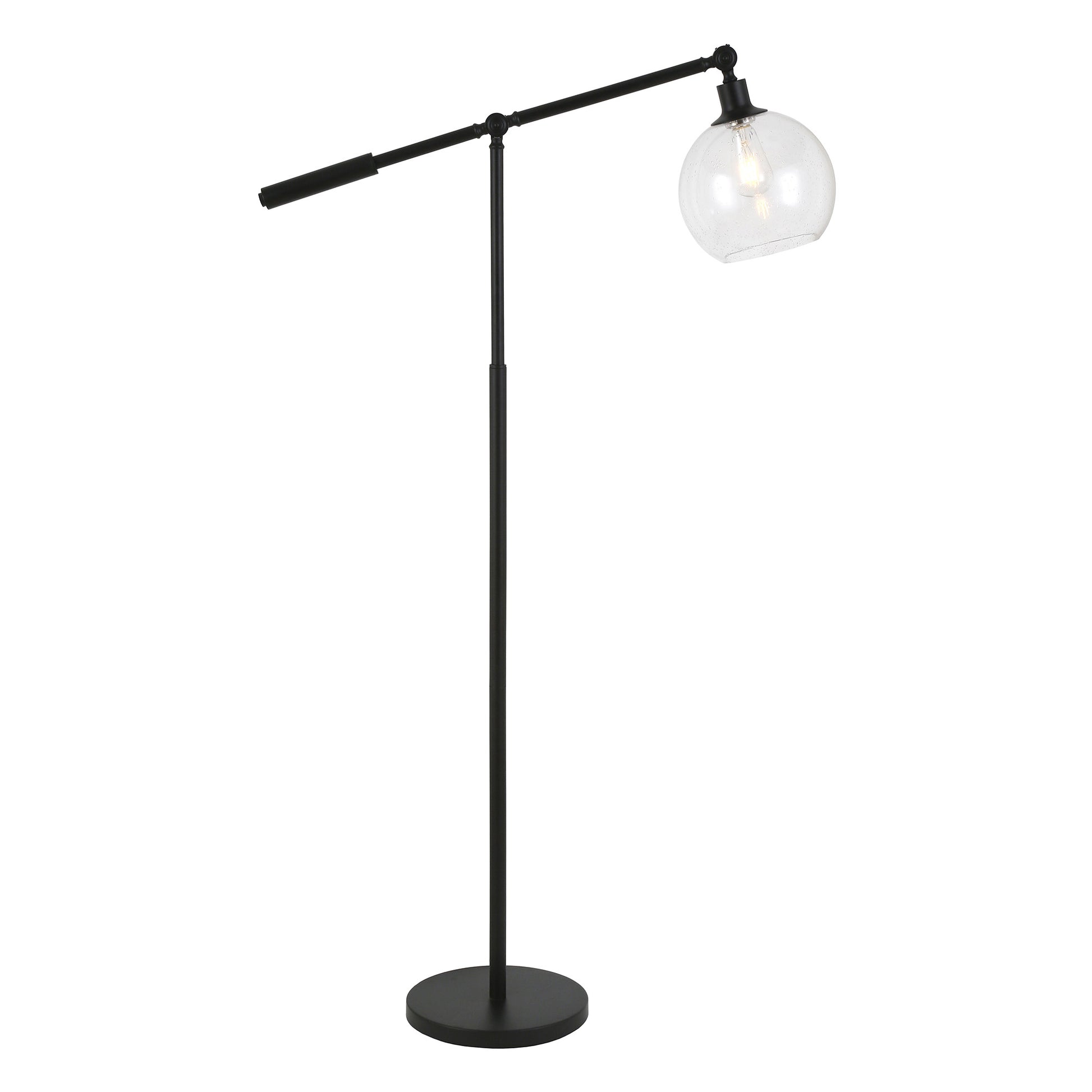 Add a bright anchor to your room with this 61" black reading floor lamp with clear seeded glass globe shade. A gorgeous black metal base bring just the right amount of pizzazz to this fabulous lamp. The lamp shade itself has a globe shape and is made of glass, which makes it a perfect choice. Next to your desk or favorite chair this single base task/reading lamp is designed to make your work or activities easier with concentrated light in just the space you need it. The light that this lamp throws is soft and warm to elevate the look of most any space in your home. Bring some lite and good vibes into your space with this updated and stylishly designed lamp. 60.63" H x 32.75" W x 30.75" D