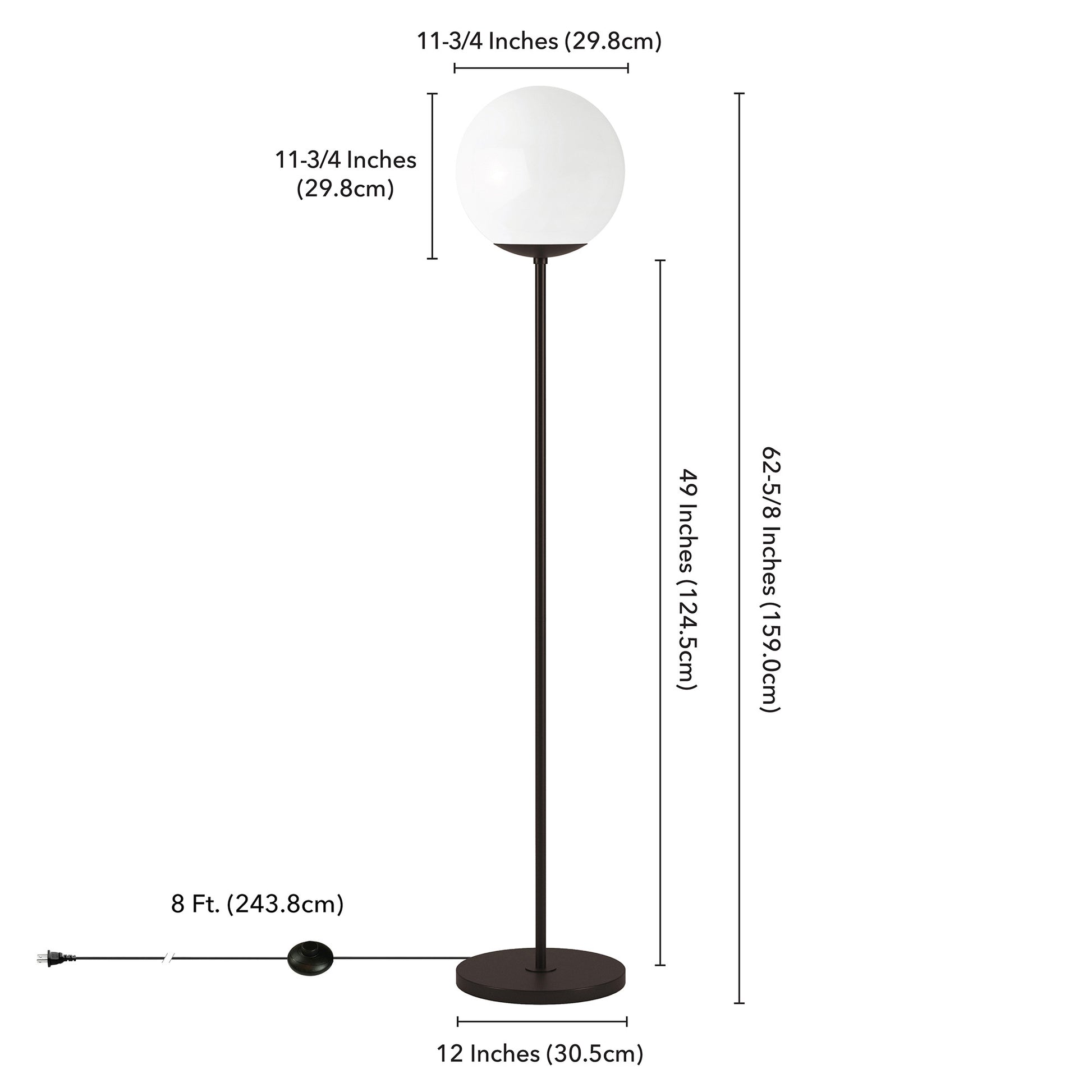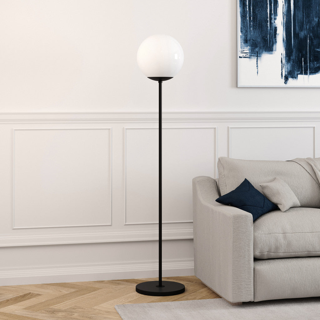 With this 62" black novelty floor lamp with white frosted glass globe shade you bring design along with some warm ambient lighting to your space. The lamp is made of sturdy metal and features a black color. This good looking lamp includes a plastic globe shaped shade. Designed to be unique and visually pleasing while giving great light, this novelty lamp will bring some fun fashion and style to your space Use this lamp anywhere and elevate the look of the whole space. Bring some lite and good vibes into your space with this updated and stylishly designed lamp. 62" H x 12" W x 12" D
