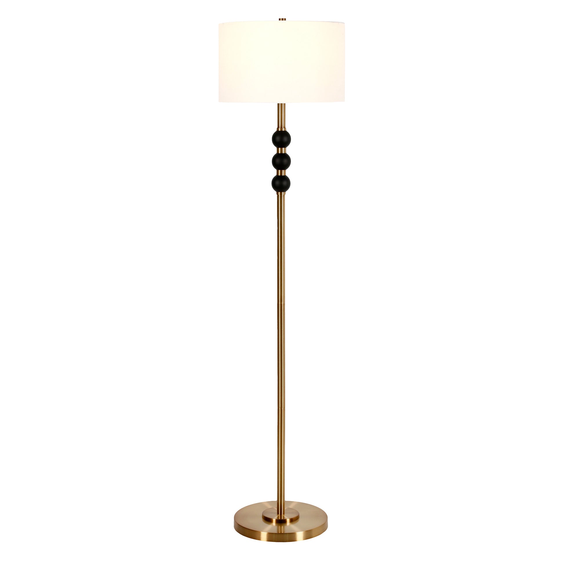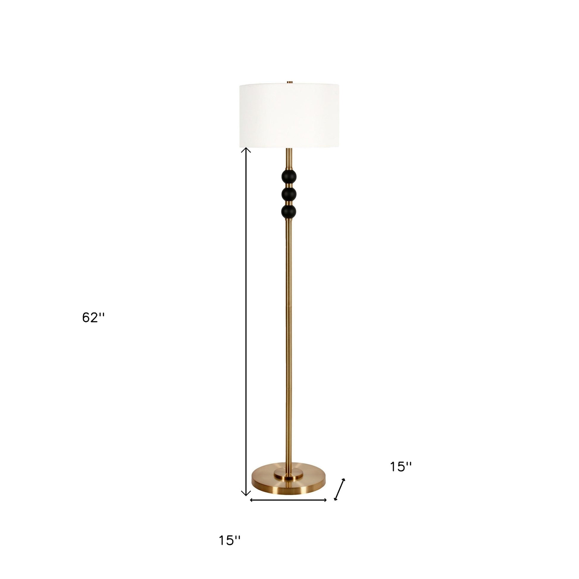 Embrace the good life with this hard working and stylish 62" black traditional shaped floor lamp with white frosted glass drum shade. The base of this lamp is made of black metal. The lamp shade has a drum shape and is made from fabric. Classically styled, this traditional lamp features a straight pole that extends upwards from a single base. Use this lamp anywhere and elevate the look of the whole space. It is perfect for virtually any decor. 62" H x 15" W x 15" D
