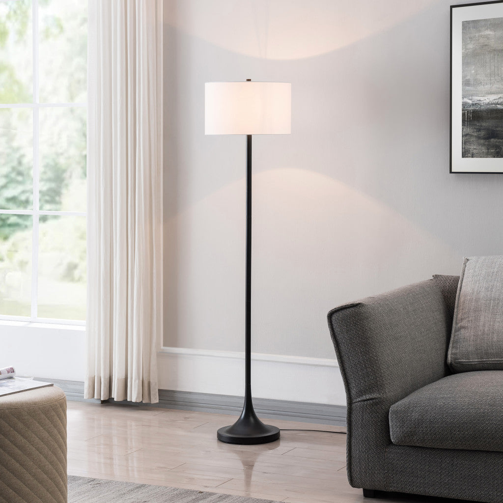 Embrace the good life with this hard working and stylish 62" black traditional shaped floor lamp with white frosted glass drum shade. The lamp is made of sturdy metal and features a black color. The black of this lamp creates a nice contrast with the white fabric drum shaped shade. Classically styled, this traditional lamp features a straight pole that extends upwards from a single base. Use this lamp anywhere and elevate the look of the whole space. Bring some lite and good vibes into your space with this updated and stylishly designed lamp. 62" H x 15" W x 15" D
