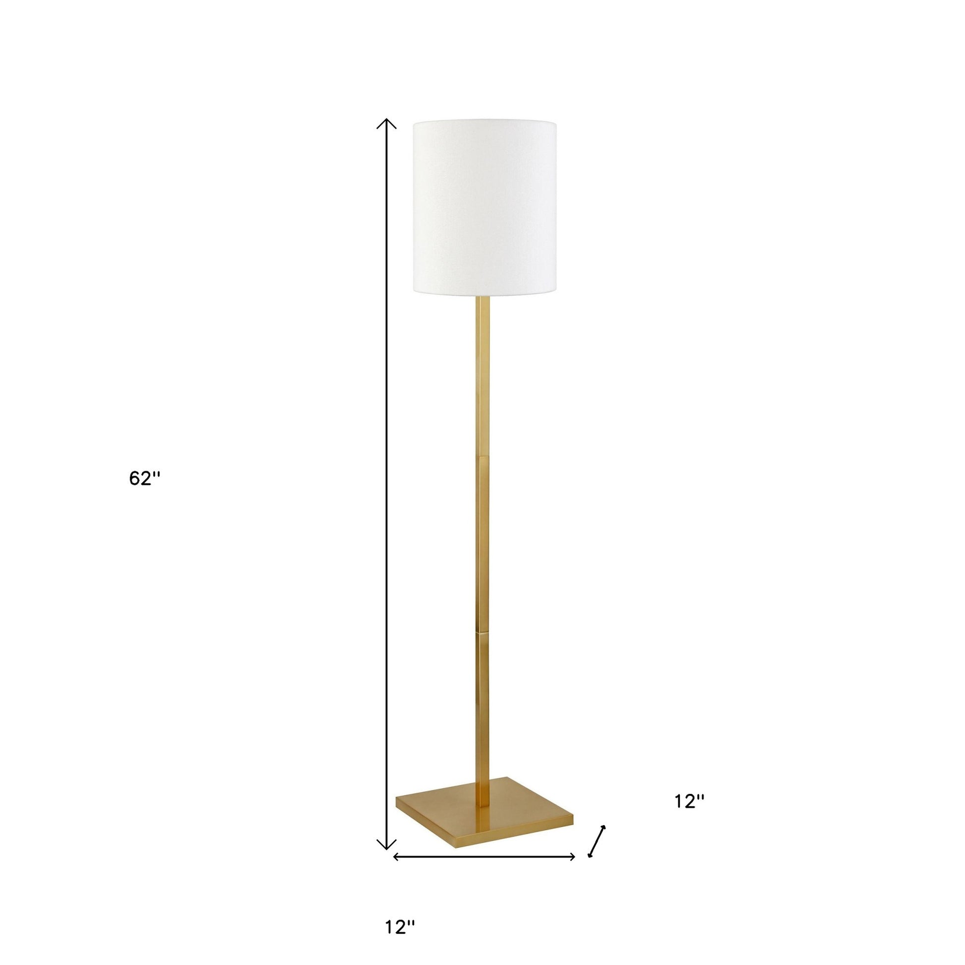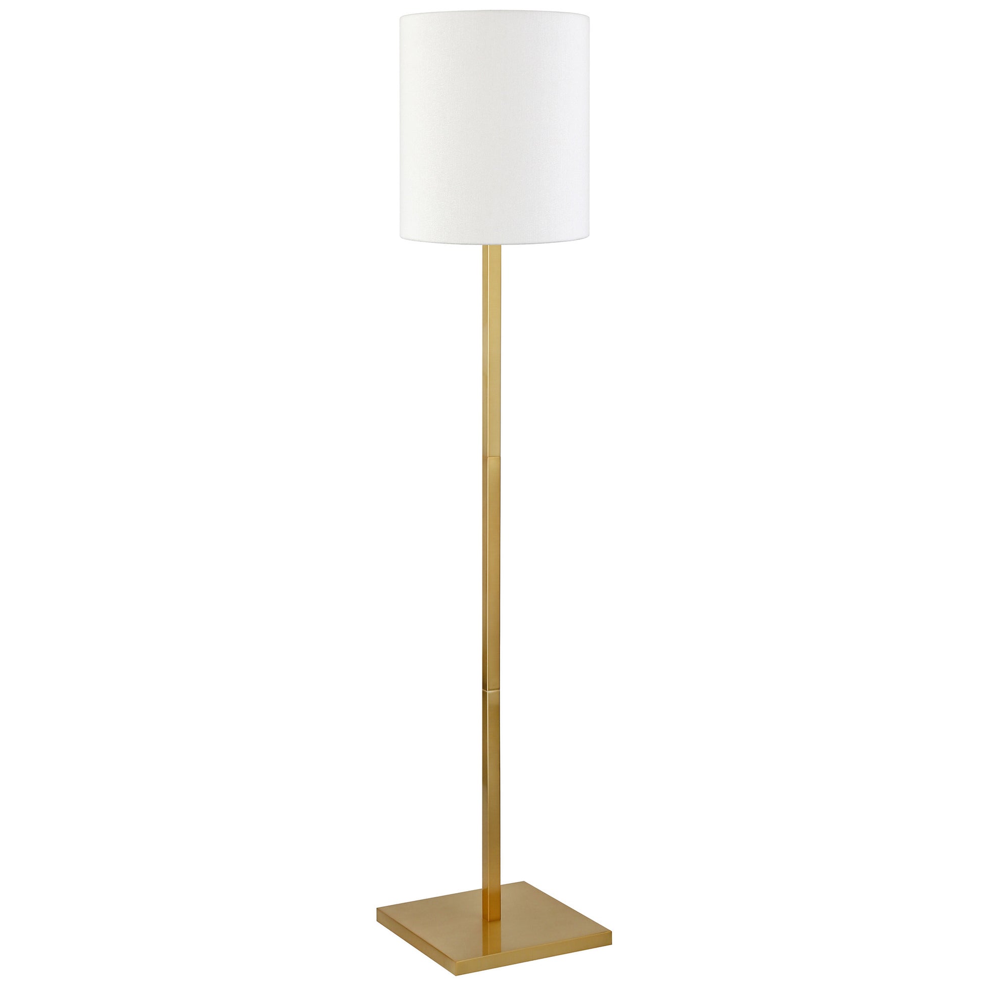 With this 62" brass traditional shaped floor lamp with white frosted glass drum shade you bring design along with some warm ambient lighting to your space. The base of this lamp is made of brass metal. The brass base coloring infuses a warm and rich tone to your space. The lamp shade has a drum shape and is made from fabric. Classically styled, this traditional lamp features a straight pole that extends upwards from a single base. The light that this lamp throws is soft and warm to elevate the look of most any space in your home. Bring some lite and good vibes into your space with this updated and stylishly designed lamp. 62" H x 12" W x 12" D