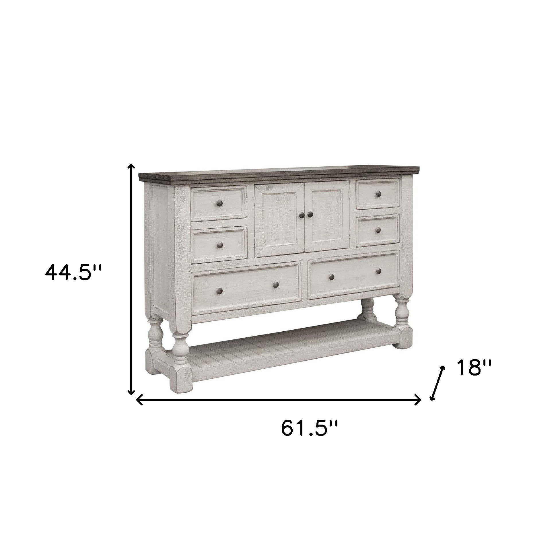 62" Gray and Ivory Solid Wood Six Drawer Triple Dresser