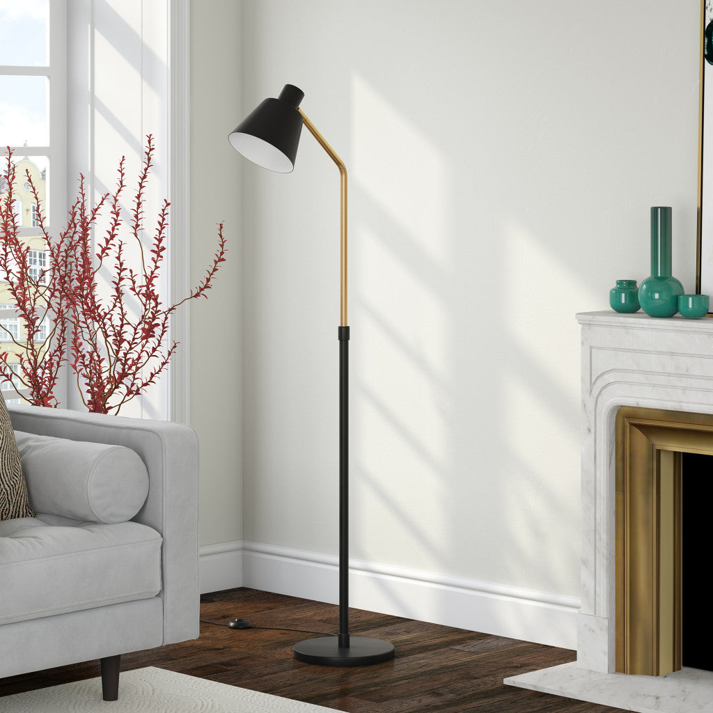 63" Black Reading Floor Lamp With Black Cone Shade