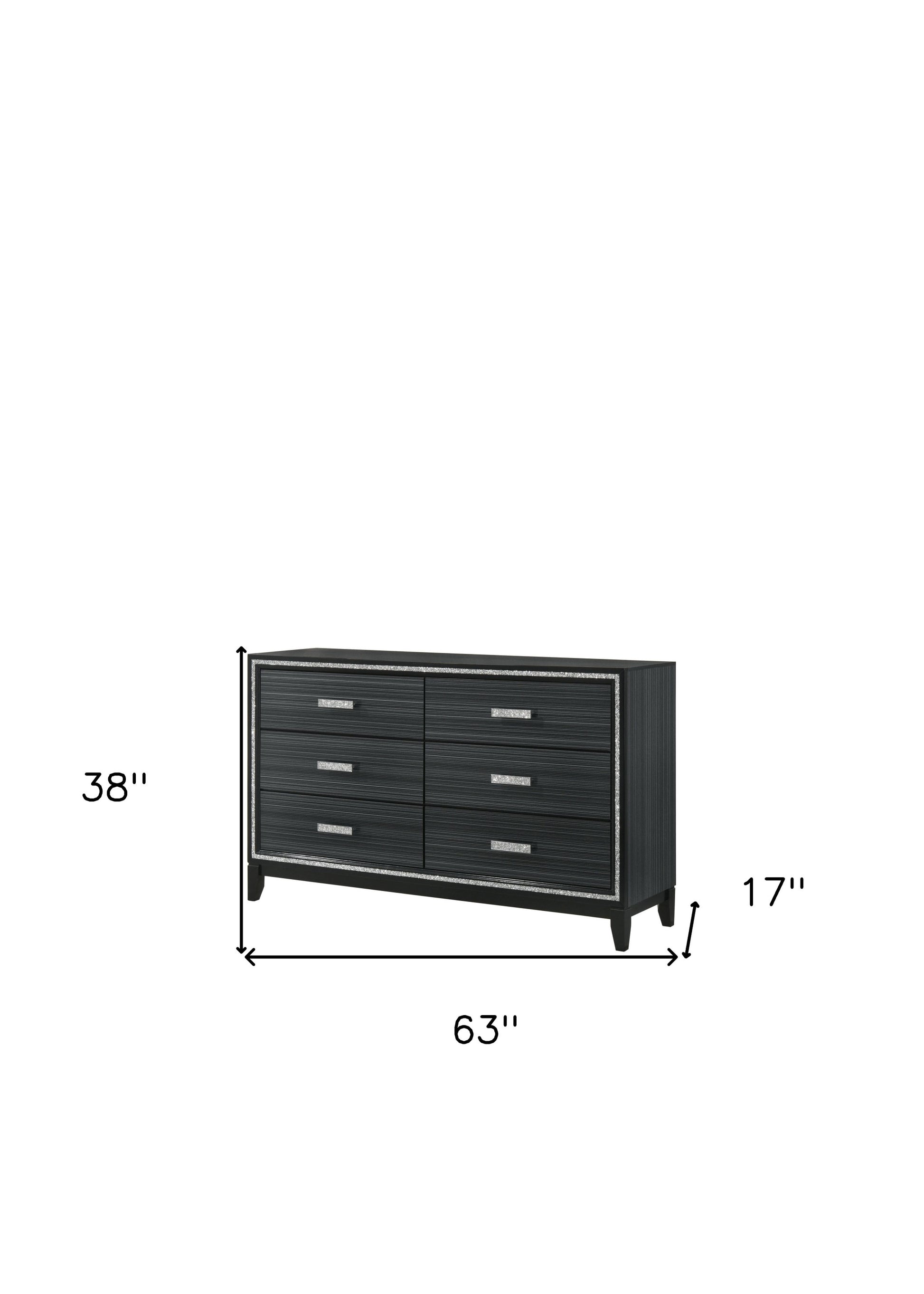 63" Black Solid and Manufactured Wood Six Drawer Double Dresser