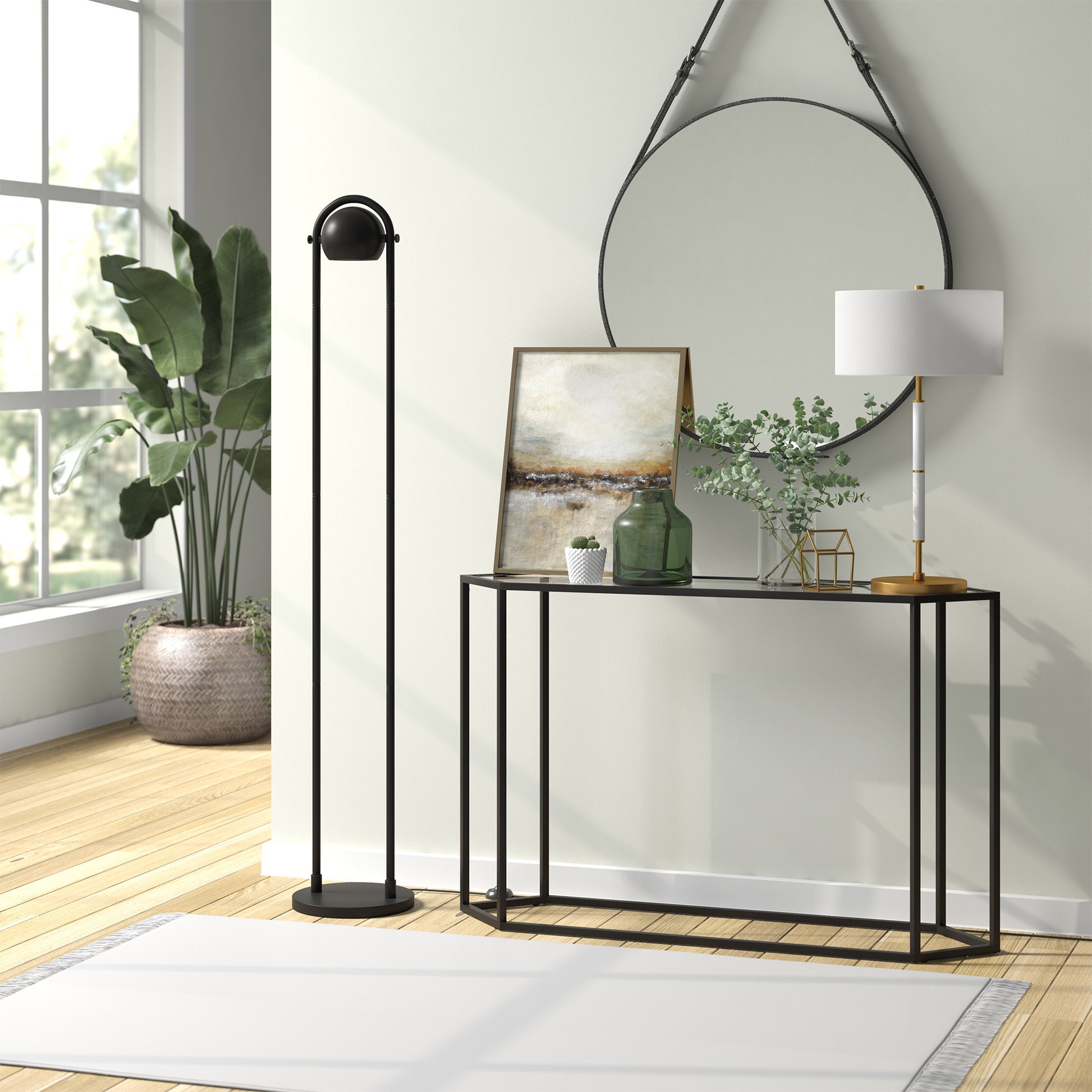 Truly a mix of design and functionality that doesn't compromise on style, this 64" black column floor lamp with black globe shade will be a great addition to your space. The base of this lamp is made of metal finished in a black tone. The lamp shade has a globe shape and is made from metal. Unique and impactful, this column or tower shaped lamp is tall and rectangular emitting warm beautiful light. High quality design makes this a great lamp for not only lighting, but accenting a room with style. Bring some lite and good vibes into your space with this updated and stylishly designed lamp. 64" H x 11" W x 11" D