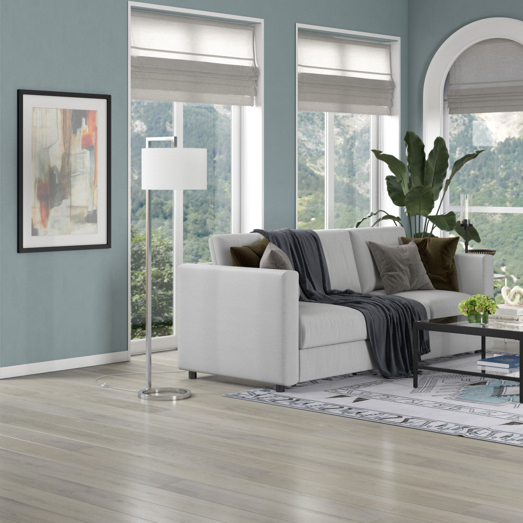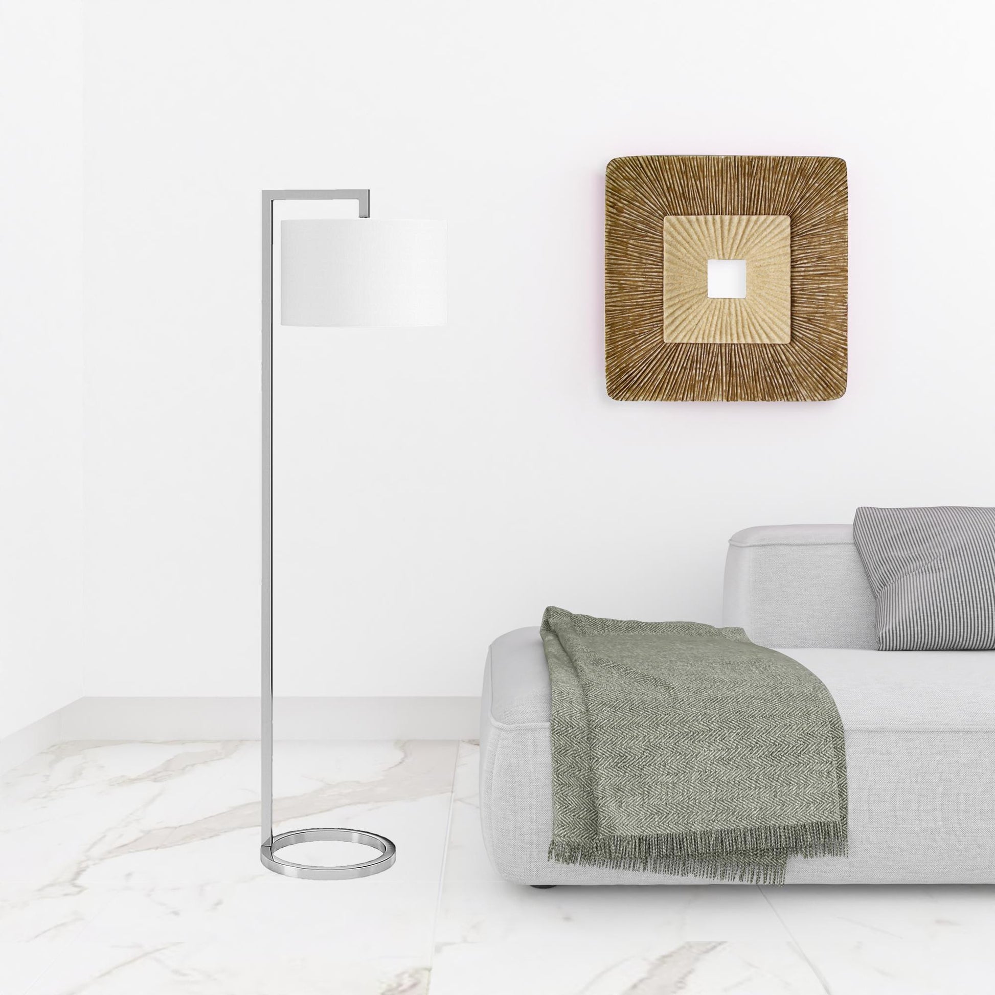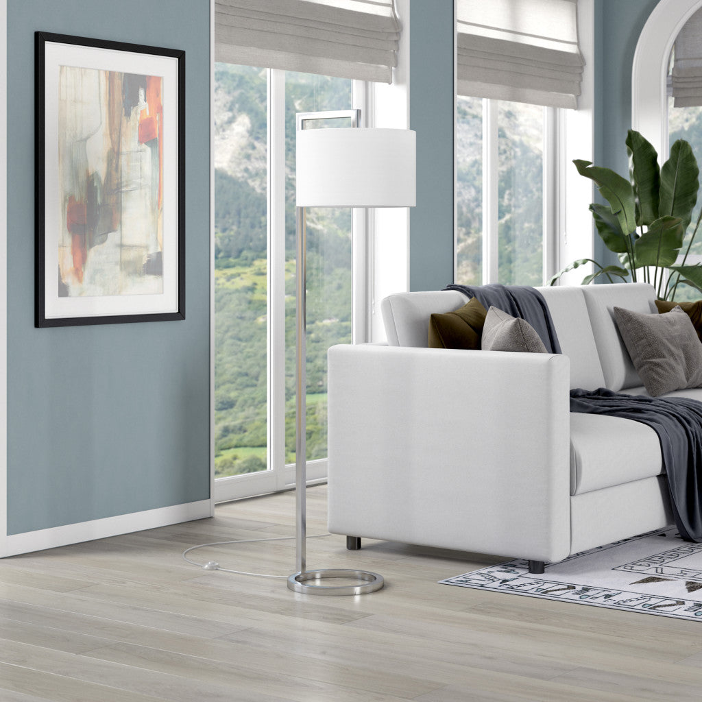Truly a mix of design and functionality that doesn't compromise on style, this 64" nickel traditional shaped floor lamp with white frosted glass drum shade will be a great addition to your space. The base of this lamp is made of metal finished in a nickel tone. The coloration of the nickel lamp base creates a fashionable marriage with the the white fabric drum shaped shade. Classically styled, this traditional lamp features a straight pole that extends upwards from a single base. The light that this lamp throws is soft and warm to elevate the look of most any space in your home. It is perfect for virtually any decor. 64" H x 16" W x 16" D