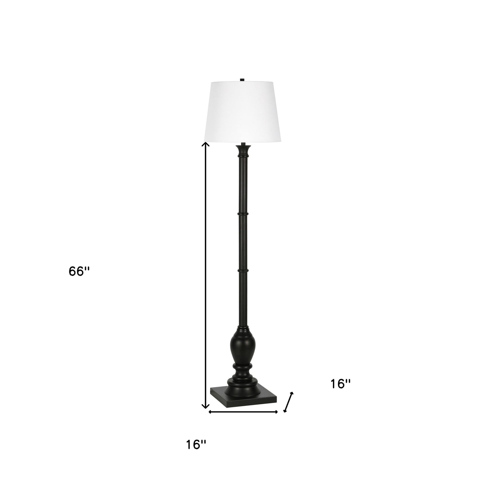 This 66" black traditional shaped floor lamp with white frosted glass empire shade is a great way to add some brightness to any corner of your home. A gorgeous black metal base bring just the right amount of pizzazz to this fabulous lamp. The lamp shade has a empire shape and is made from fabric. Classically styled, this traditional lamp features a straight pole that extends upwards from a single base. Use this lamp anywhere and elevate the look of the whole space. It is perfect for virtually any decor. 66" H x 16" W x 16" D