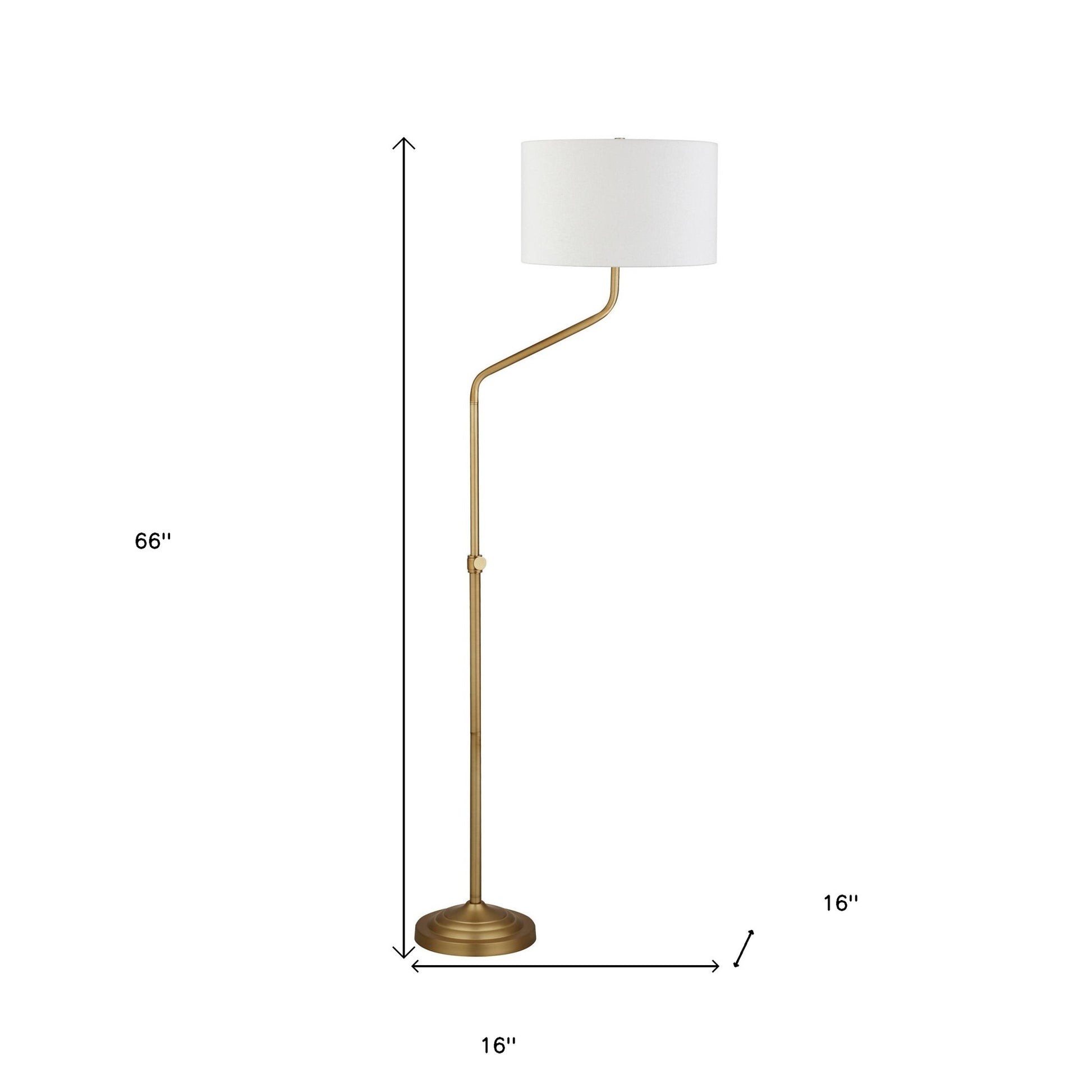 66" Brass Adjustable Traditional Shaped Floor Lamp With White Frosted Glass Drum Shade
