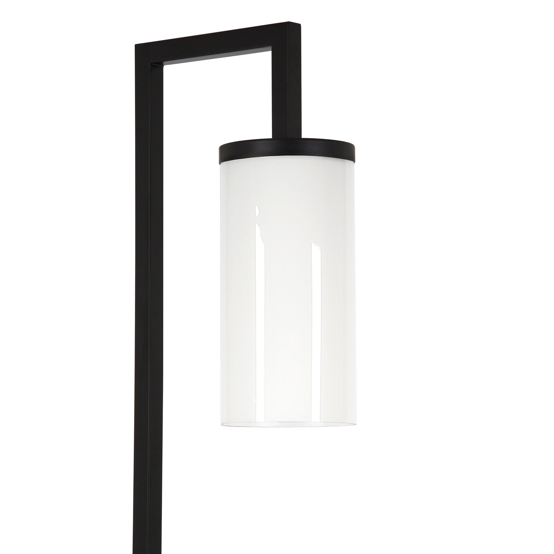 Embrace the good life with this hard working and stylish 67" black reading floor lamp with white frosted glass drum shade. The base of this lamp is made of metal finished in a black tone. The coloration of the black lamp base creates a fashionable marriage with the the white glass drum shaped shade. Next to your desk or favorite chair this single base task/reading lamp is designed to make your work or activities easier with concentrated light in just the space you need it. Use this lamp anywhere and elevate the look of the whole space. Bring some lite and good vibes into your space with this updated and stylishly designed lamp. 67" H x 11" W x 9" D