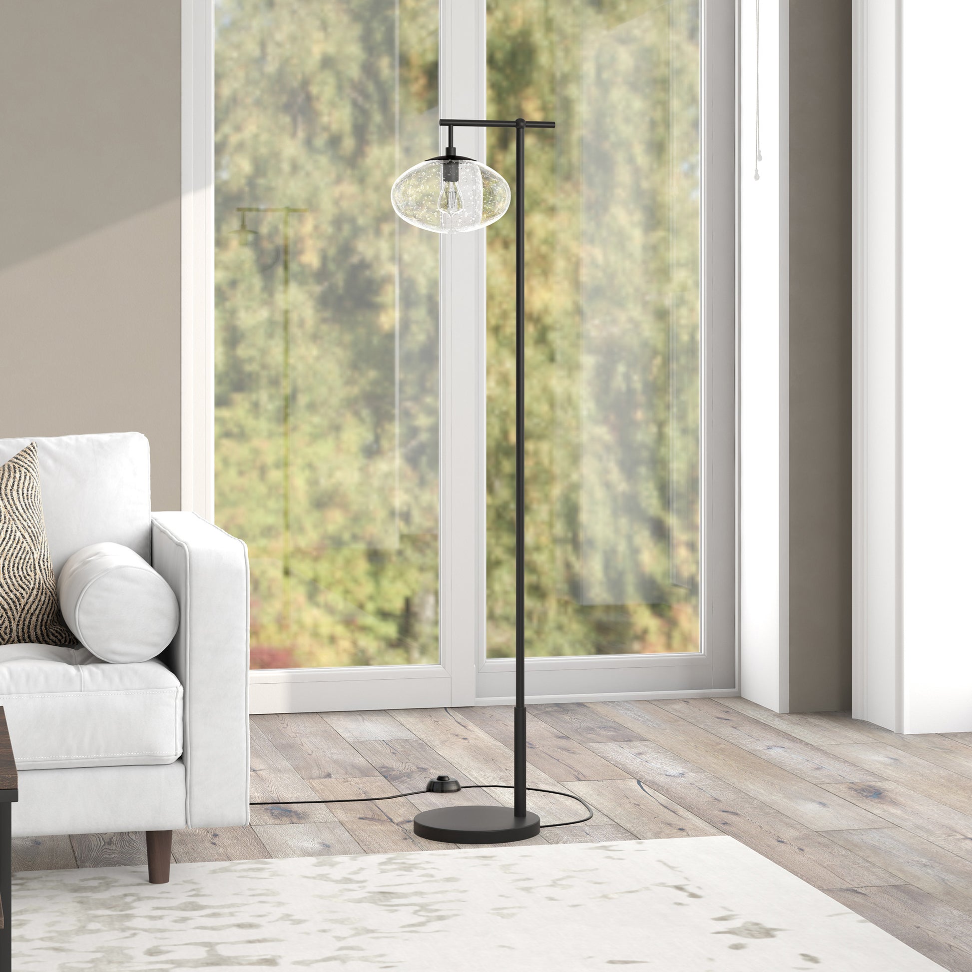 Add a bright anchor to your room with this 68" black reading floor lamp with clear seeded glass globe shade. The base of this lamp is made of metal finished in a black tone. The black of this lamp creates a nice contrast with the clear glass globe shaped shade. Next to your desk or favorite chair this single base task/reading lamp is designed to make your work or activities easier with concentrated light in just the space you need it. The light that this lamp throws is soft and warm to elevate the look of most any space in your home. The perfect lamp to create just the right natural and soothing light in your space. 68" H x 12" W x 15" D