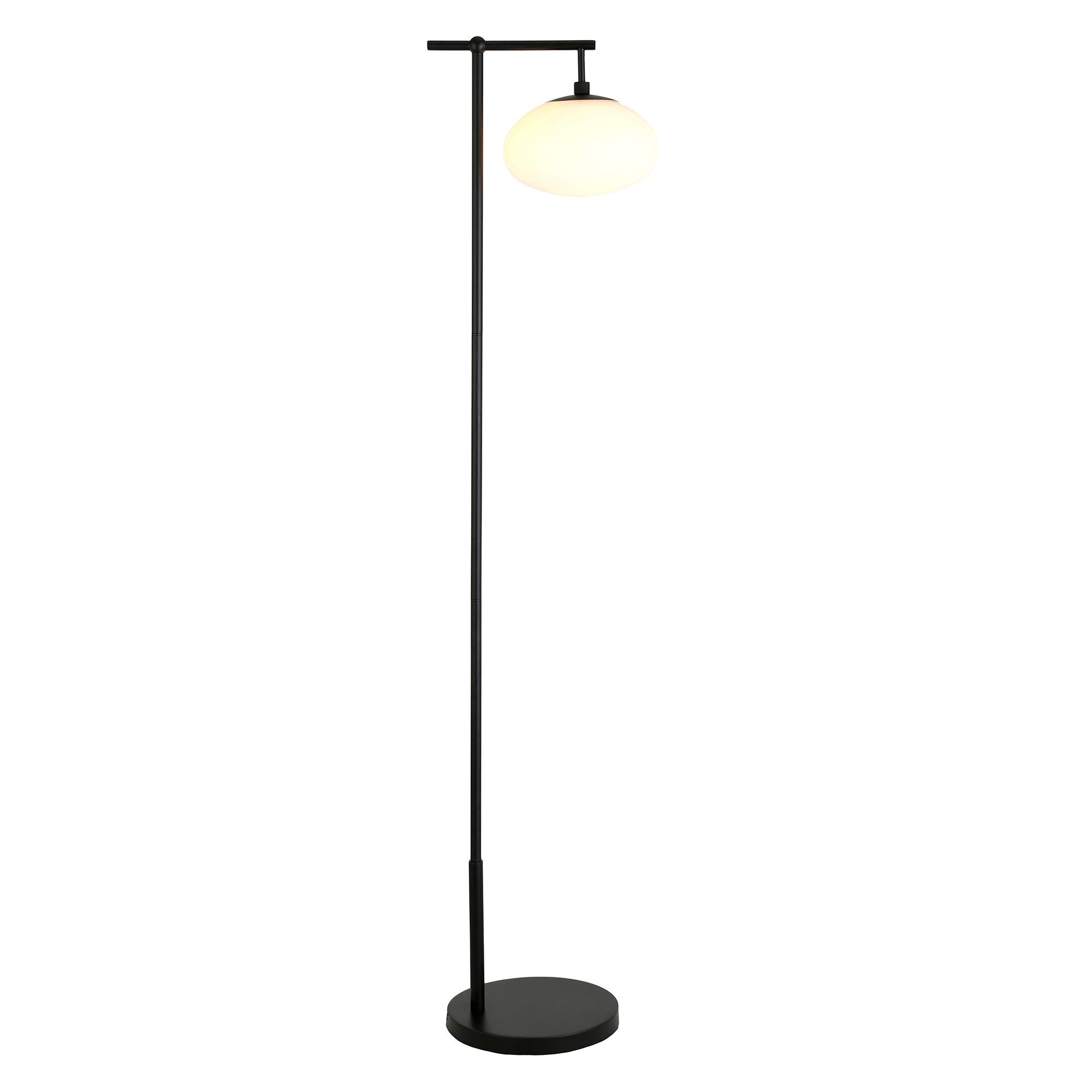 This 68" black reading floor lamp with white frosted glass globe shade is the perfect combination of design and function mixed with basic good looks. A gorgeous black metal base bring just the right amount of pizzazz to this fabulous lamp. The black of this lamp creates a nice contrast with the white glass globe shaped shade. Next to your desk or favorite chair this single base task/reading lamp is designed to make your work or activities easier with concentrated light in just the space you need it. Use this lamp anywhere and elevate the look of the whole space. The perfect lamp to create just the right natural and soothing light in your space. 68" H x 12" W x 15" D