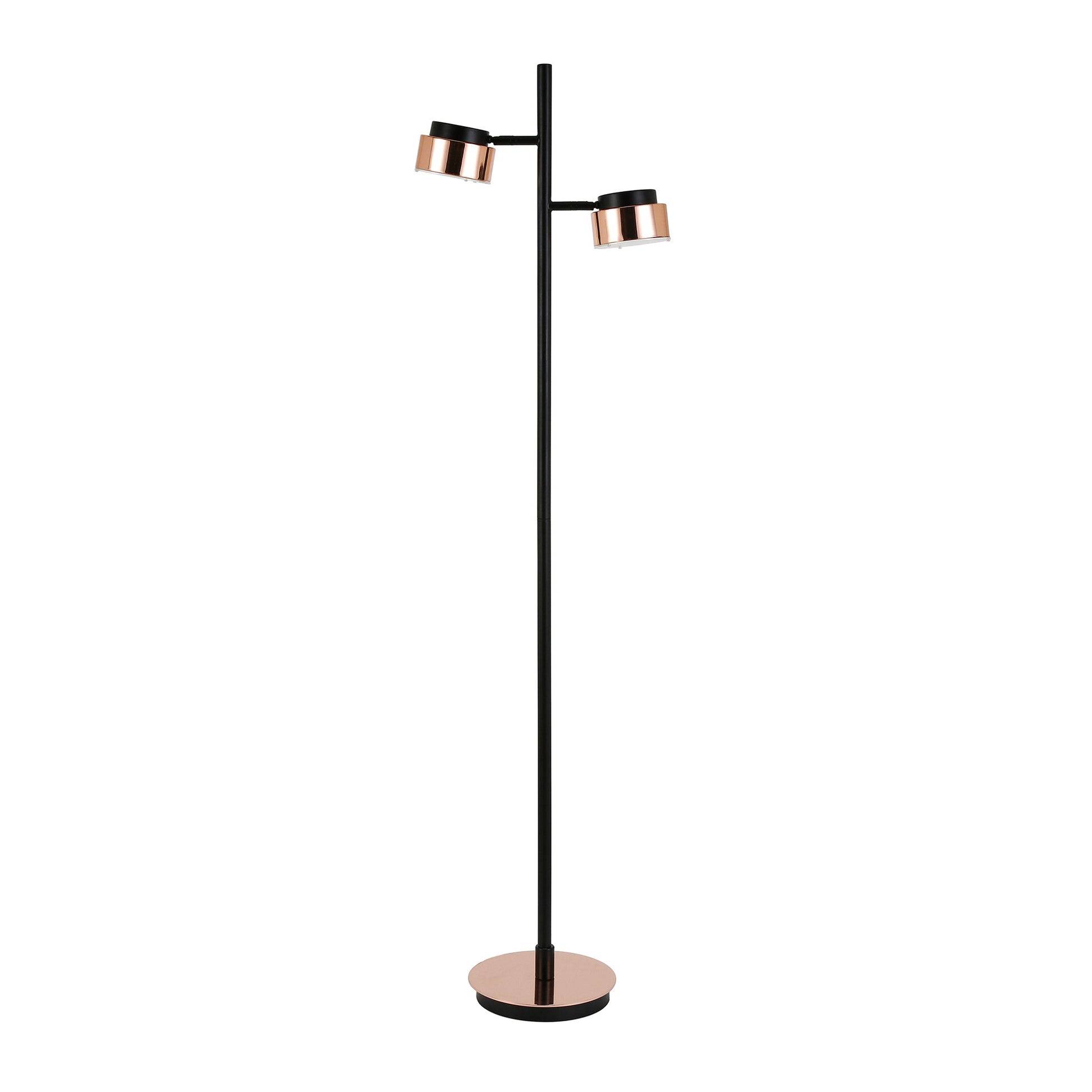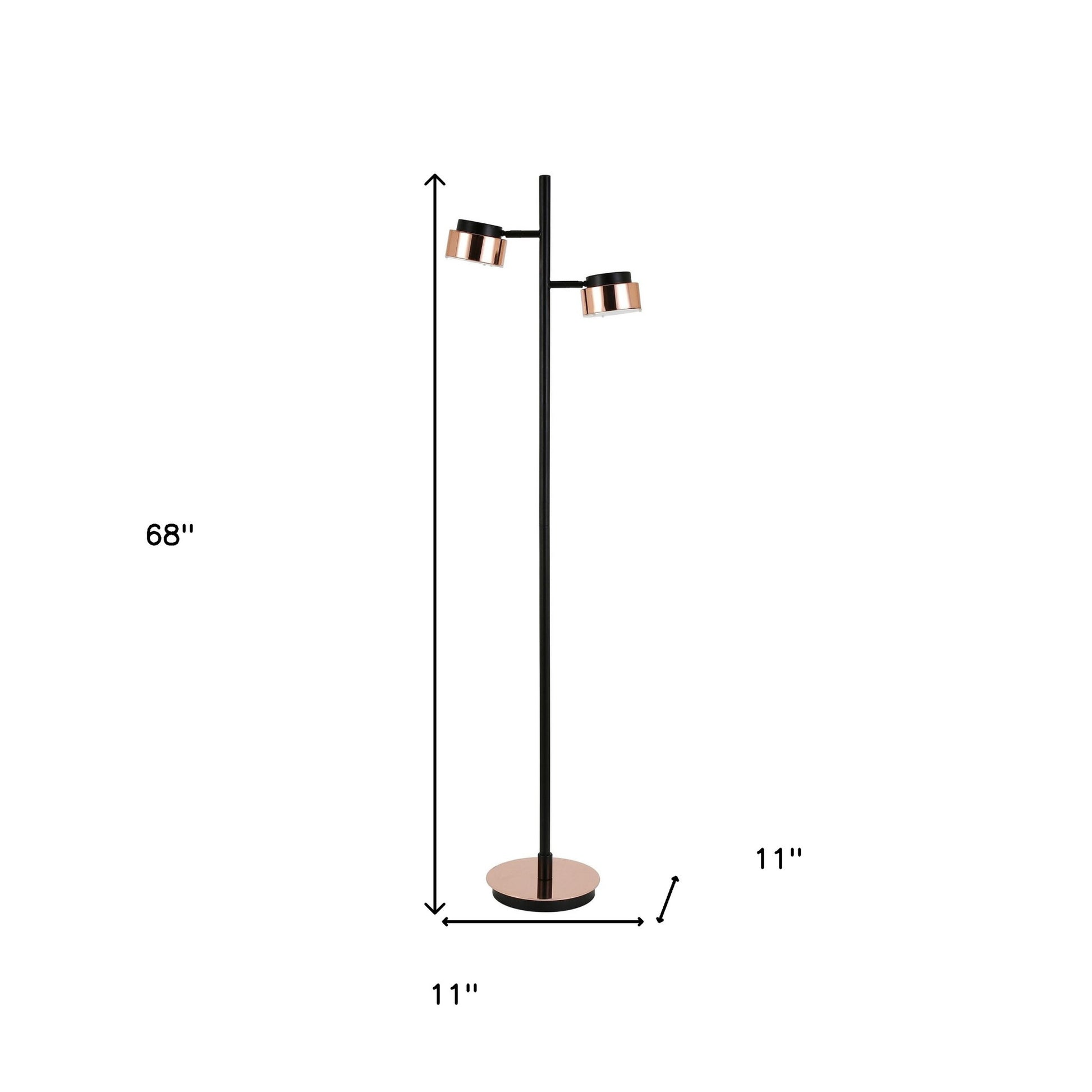 This 68" black two light tree floor lamp with copper bell shade is a great way to add some brightness to any corner of your home. A gorgeous black metal base bring just the right amount of pizzazz to this fabulous lamp. The coloration of the black lamp base creates a fashionable marriage with the the copper metal bell shaped shade. Creative and cool, this tree shaped lamp features a straight pole that branches out into multiple arms to maximize the light in your space. Use this lamp anywhere and elevate the look of the whole space. The perfect lamp to create just the right natural and soothing light in your space. 68" H x 11" W x 11" D