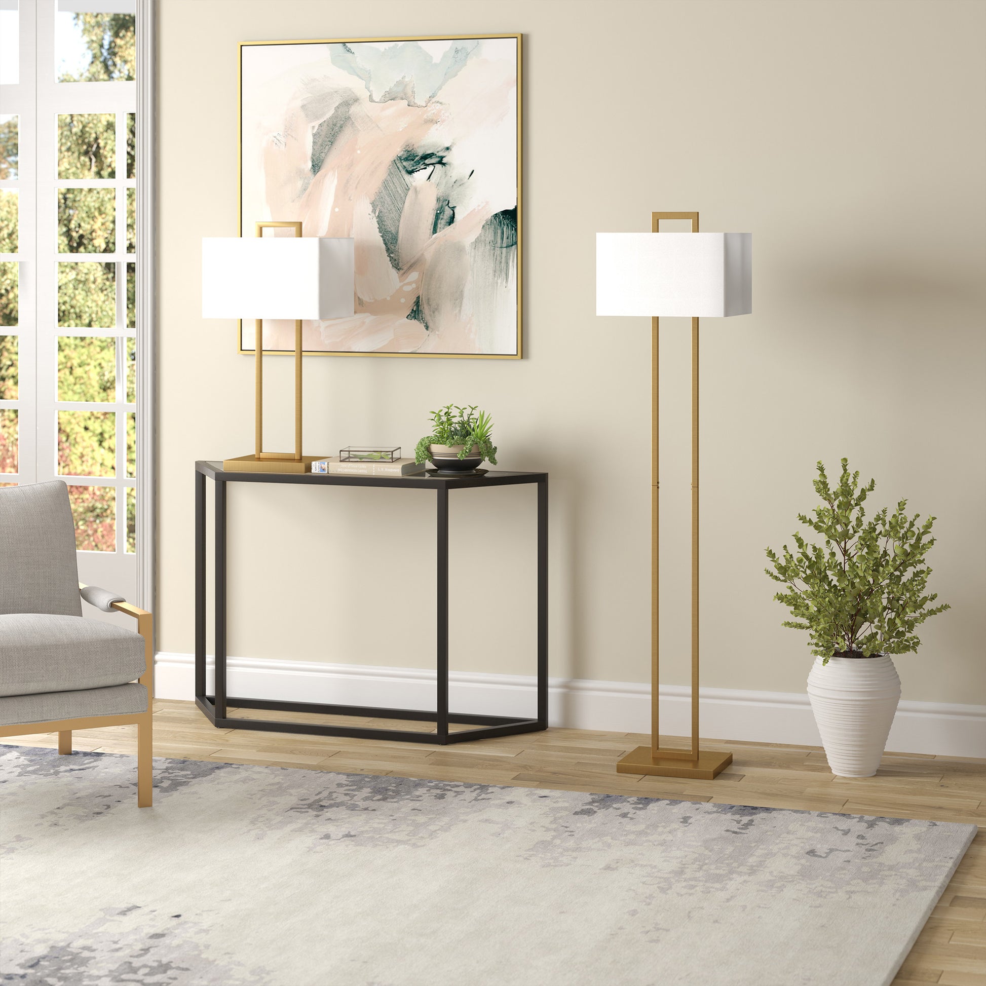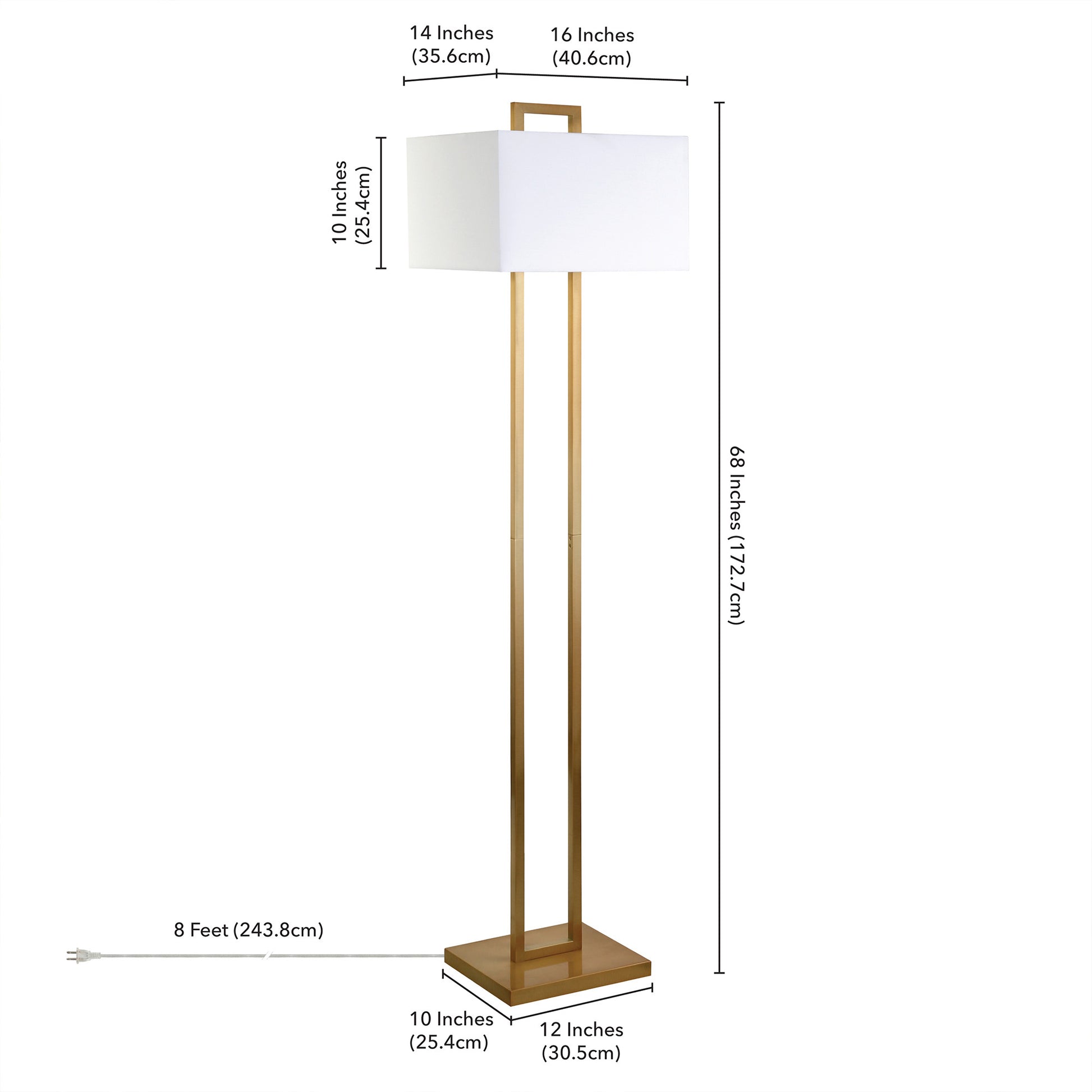 Embrace the good life with this hard working and stylish 68-inch brass traditional shaped floor lamp with white frosted glass rectangular shade. The base of this lamp is made of metal finished in a brass tone. The brass base coloring infuses a warm and rich tone to your space. The brass of this lamp creates a nice contrast with the white fabric rectangular shaped shade. Classically styled, this traditional lamp features a straight pole that extends upwards from a single base. Use this lamp anywhere and elevate the look of the whole space. Bring some lite and good vibes into your space with this updated and stylishly designed lamp. 68-inch H x 14-inch W x 16-inch D