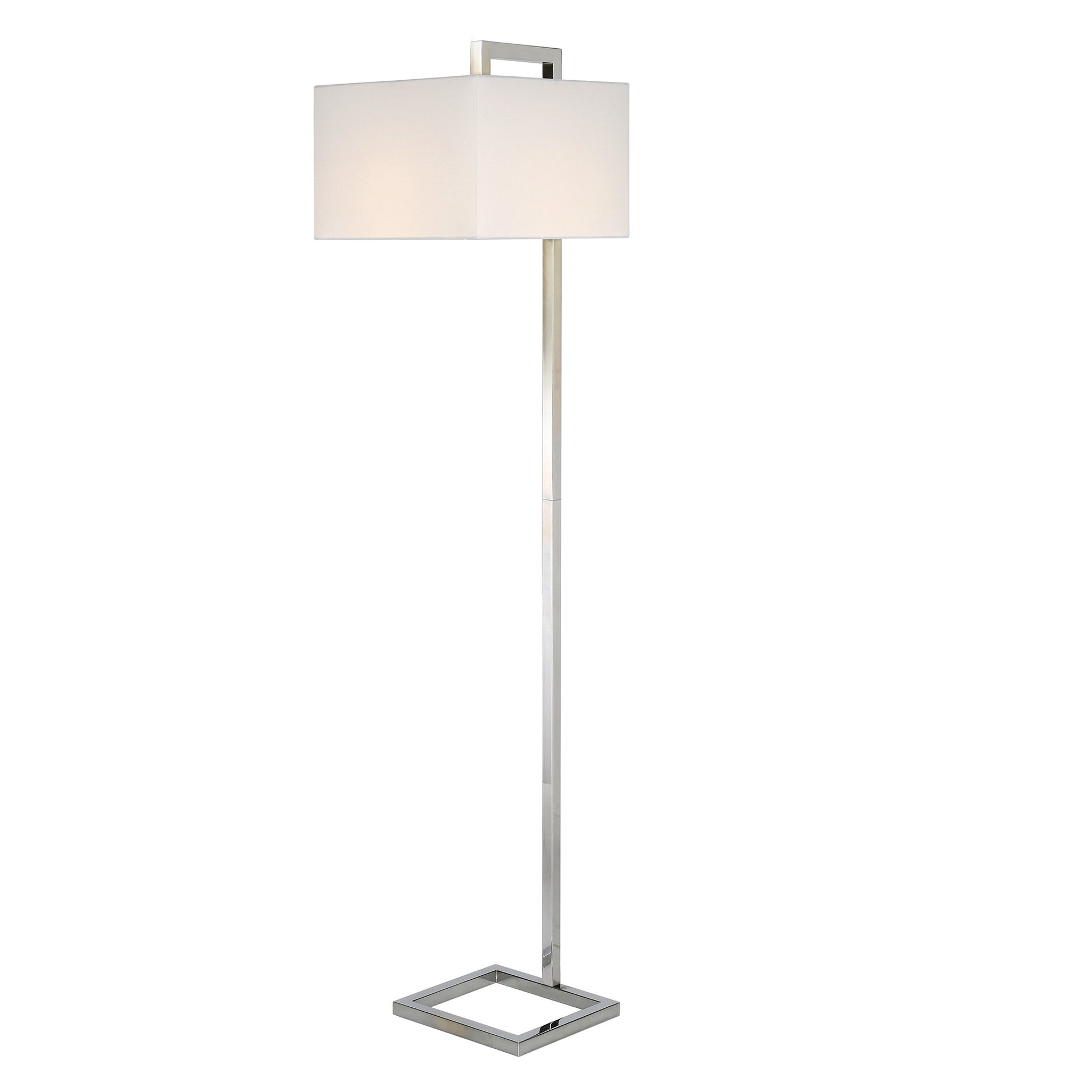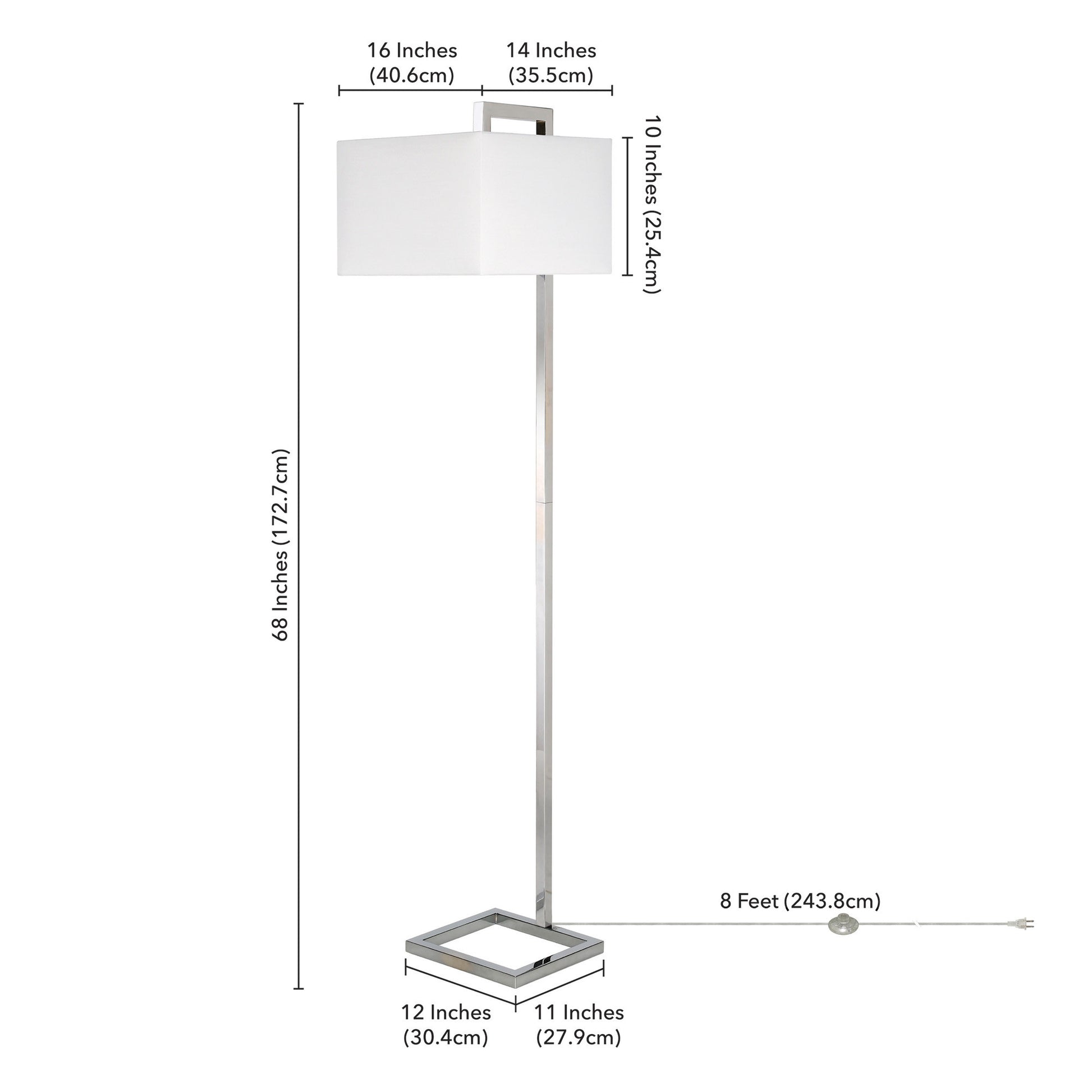 Add a bright anchor to your room with this 68-inch nickel floor lamp with white frosted glass rectangular shade. The base of this lamp is made of nickel metal. The lamp shade has a rectangular shape and is made from fabric. Classically styled, this traditional lamp features a straight pole that extends upwards from a single base. The light that this lamp throws is soft and warm to elevate the look of most any space in your home. The perfect lamp to create just the right natural and soothing light in your space. 68-inch H x 16-inch W x 14-inch D
