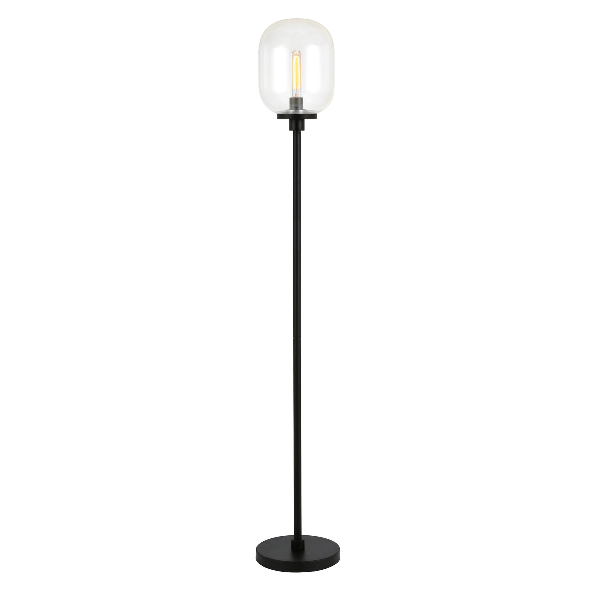 Embrace the good life with this hard working and stylish 69" black novelty floor lamp with clear seeded glass globe shade. The base of this lamp is made of black metal. The lamp light itself is covered by a glass, globe shaped shade, making this a classy piece that will complement most any interior. Designed to be unique and visually pleasing while giving great light, this novelty lamp will bring some fun fashion and style to your space Use this lamp anywhere and elevate the look of the whole space. It is perfect for virtually any decor. 69" H x 11" W x 11" D