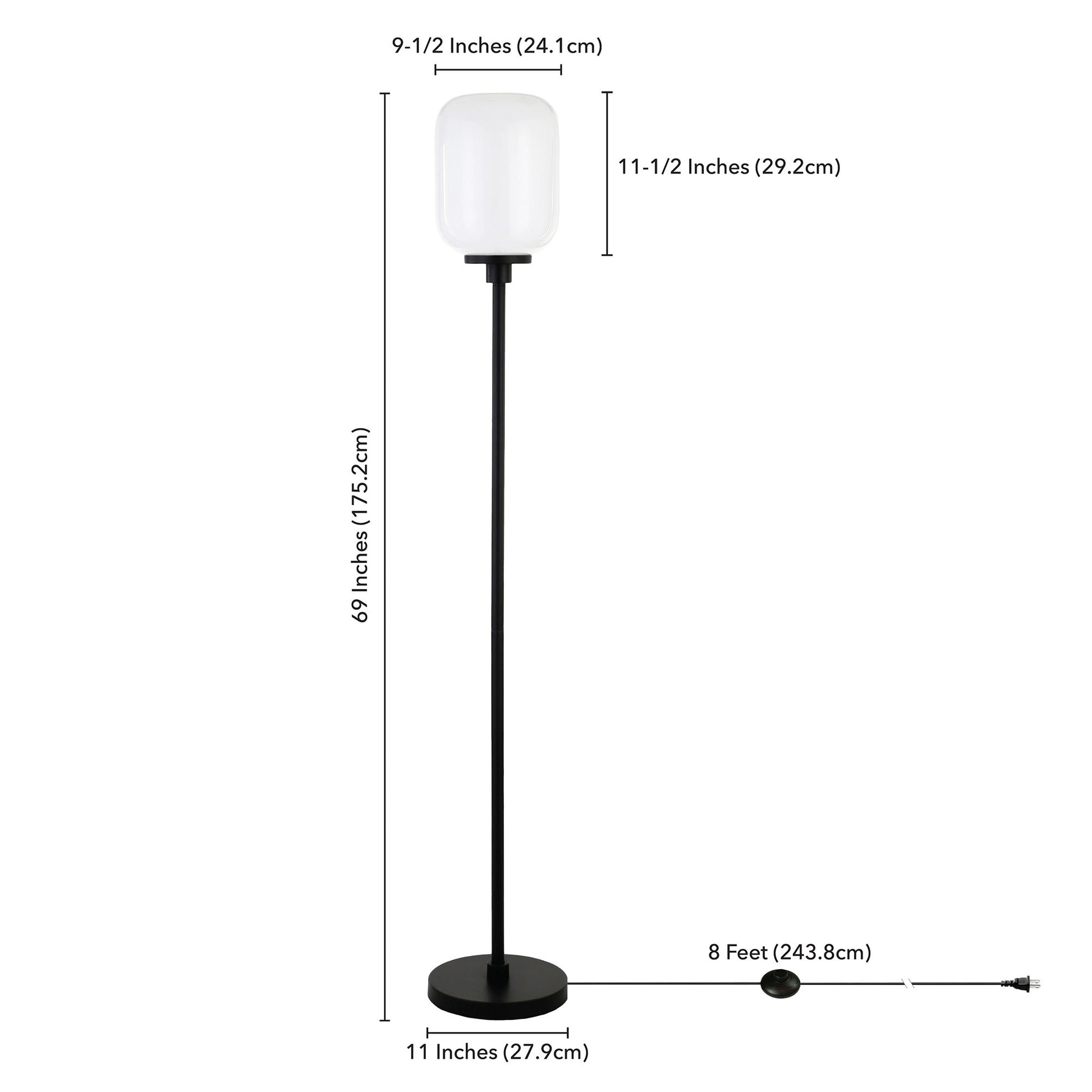 Add a bright anchor to your room with this 69" black novelty floor lamp with white frosted glass globe shade. The base of this lamp is made of black metal. The black of this lamp creates a nice contrast with the white glass globe shaped shade. Designed to be unique and visually pleasing while giving great light, this novelty lamp will bring some fun fashion and style to your space Use this lamp anywhere and elevate the look of the whole space. It is perfect for virtually any decor. 69" H x 11" W x 11" D