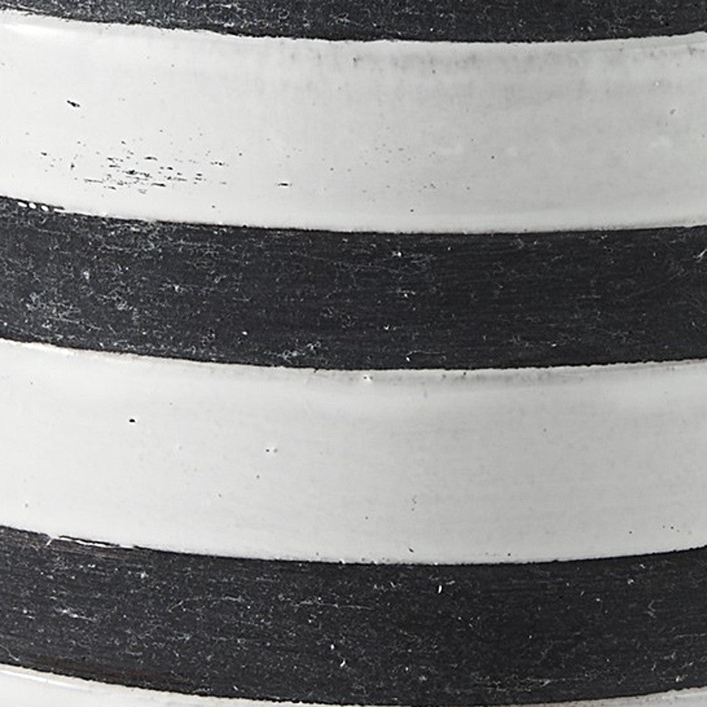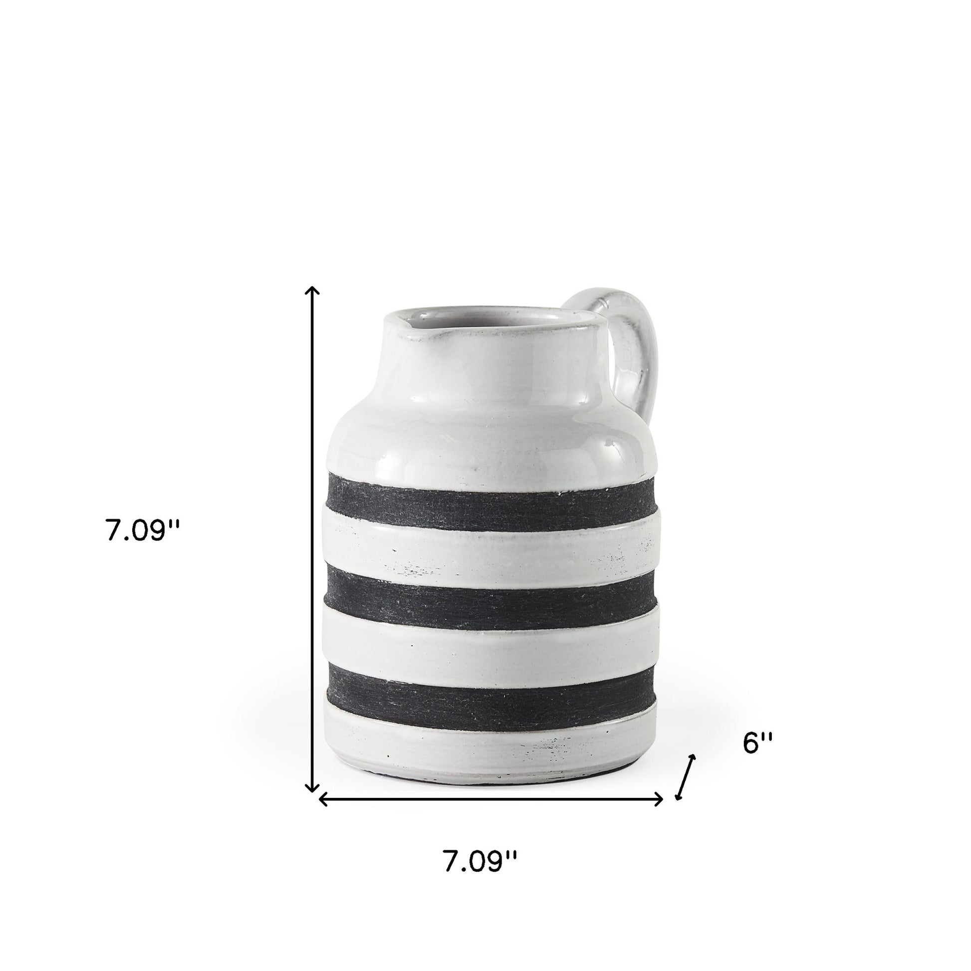 This Petite Rustic White and Blue Stripe Ceramic Jug is the perfect way to spice up your space with a gorgeous artisan decorative accent. This decorative jug is made from ceramic and has a short and wide shape. This vase has a rustic and weathered look glaze of white with three midnight blue stripes that run around the body. There is a perfect sized handle on the side that adds to the charm of this versatile vessel. 7.08" H x 7.08" W x 6.00" D