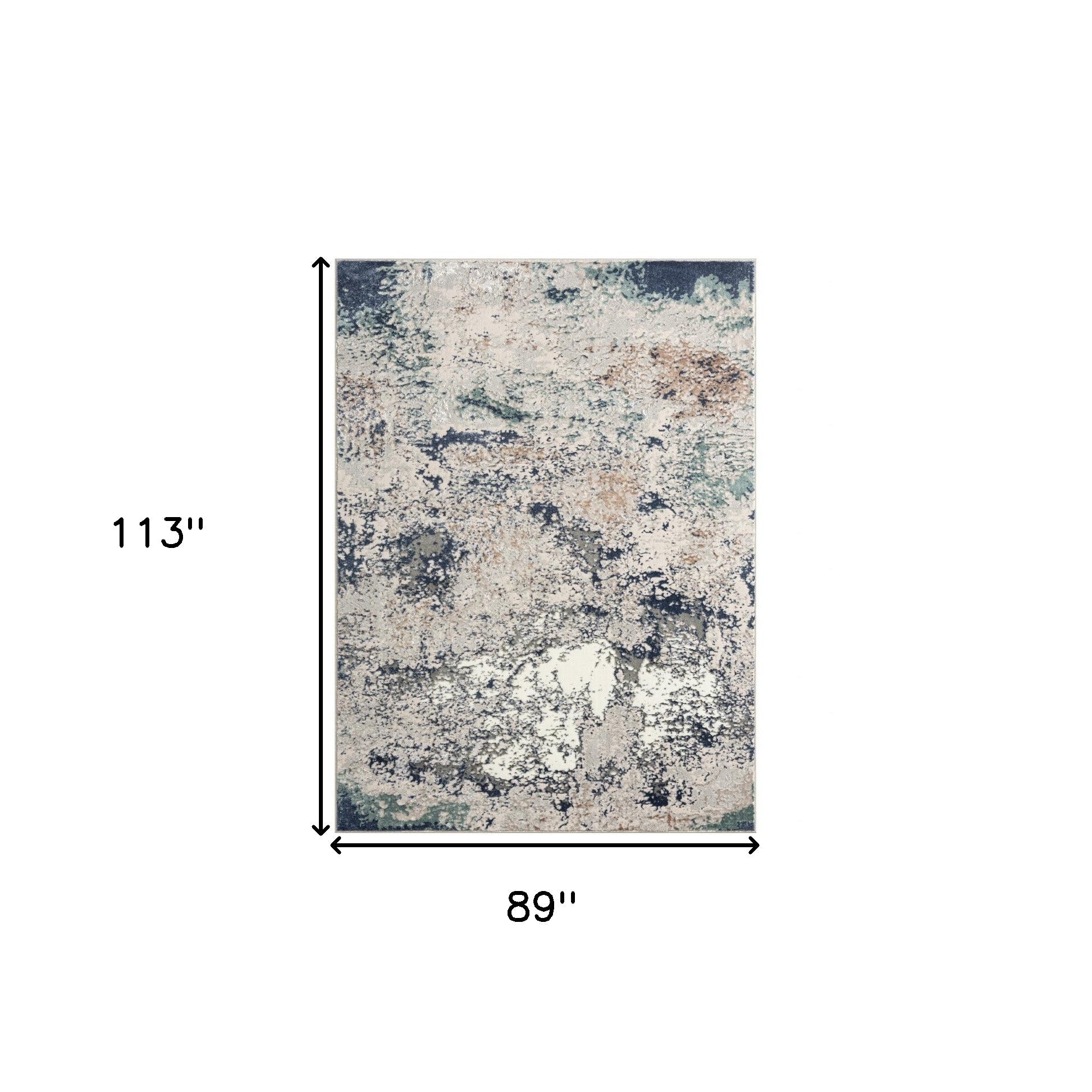 7' X 9' Blue And Gray Abstract Stain Resistant Area Rug