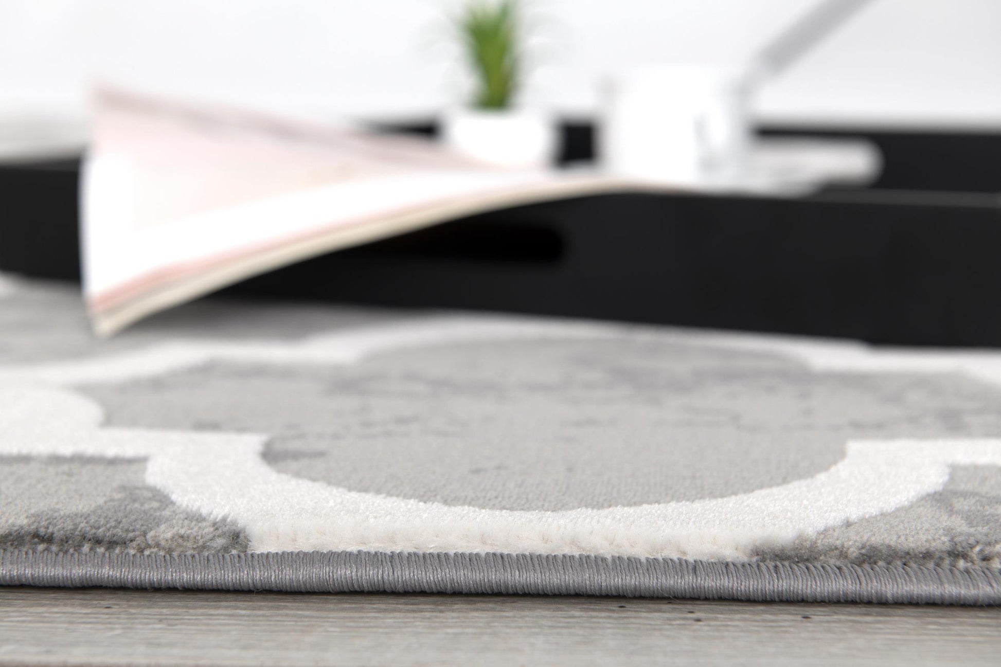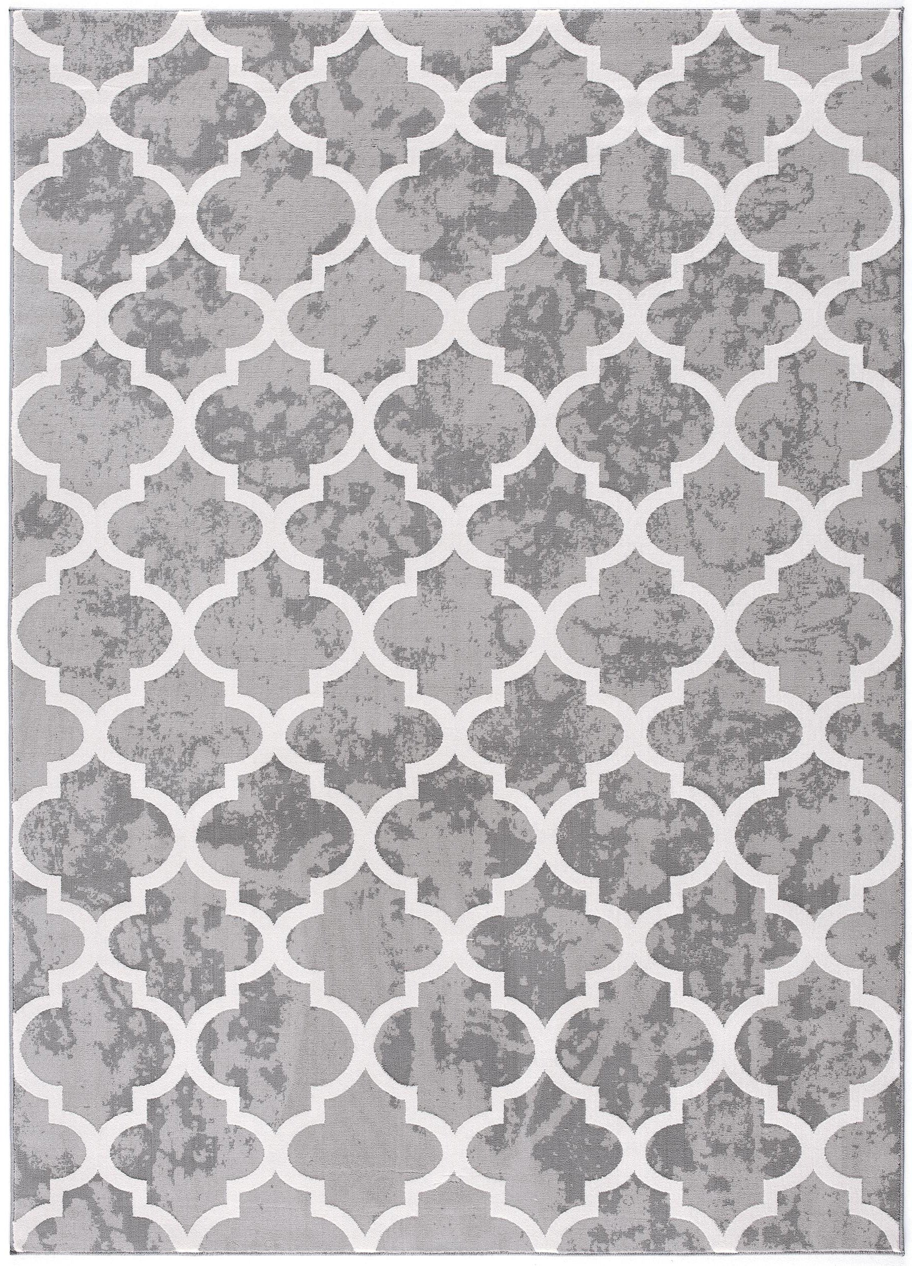This 7' x 9' grey geometric power loom stain resistant area rug, is a great way to add warmth to a room. This rectangle shaped rug features a geometric design in grey to give it visual interest. A classic shape marries with good looking design for your space Made in Turkey, this rug offers high quality combined with good looking designer sensibilities. Ideal for spaces with kids and pets, this rug is stain resistant to help repel stains and spilled liquids. Place this area rug against a hardwood or tile floor and it will enliven your living space with style and sophistication. 0.8" H x 78" W x 113" D