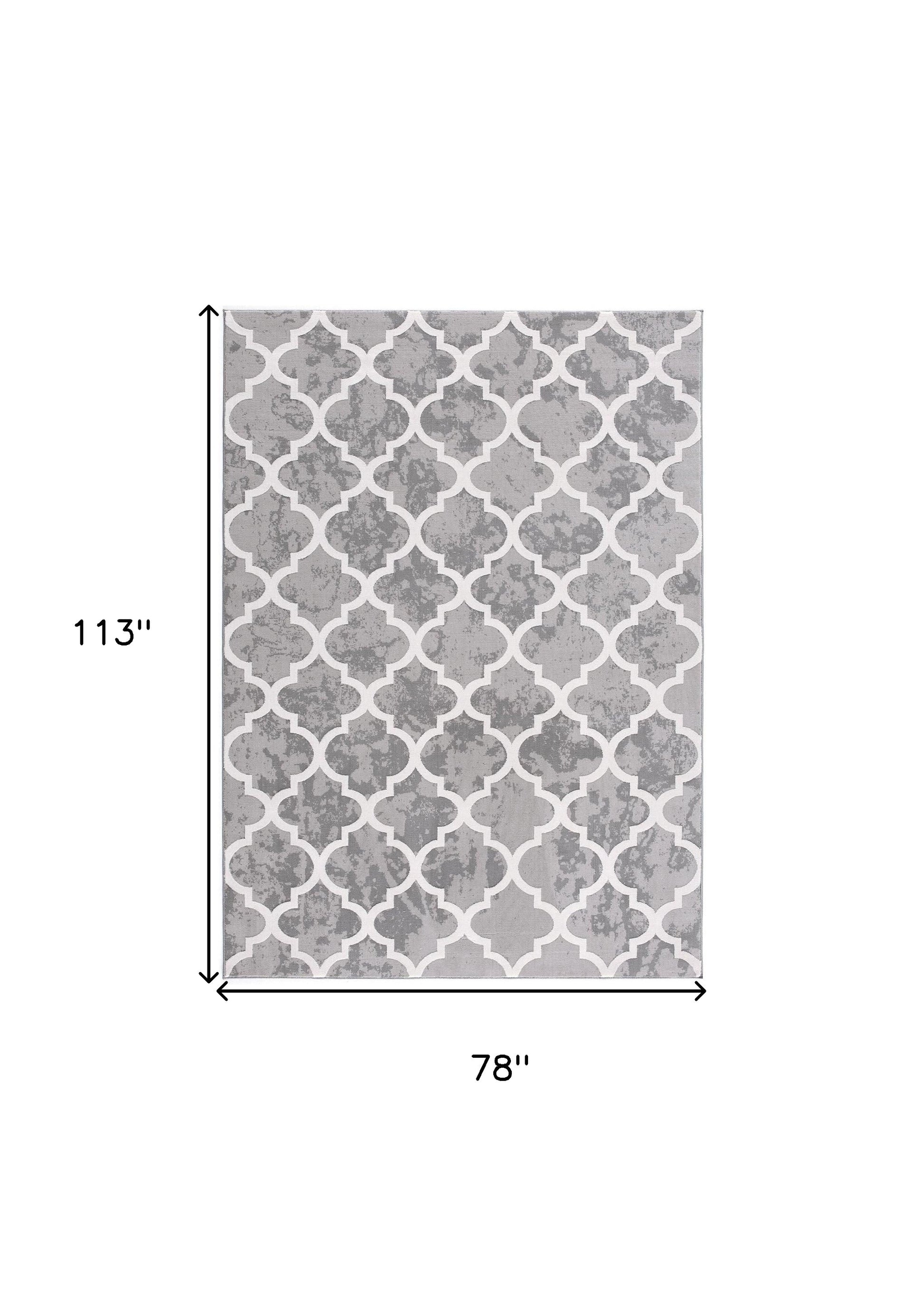 7' X 9' Grey Geometric Power Loom Stain Resistant Area Rug