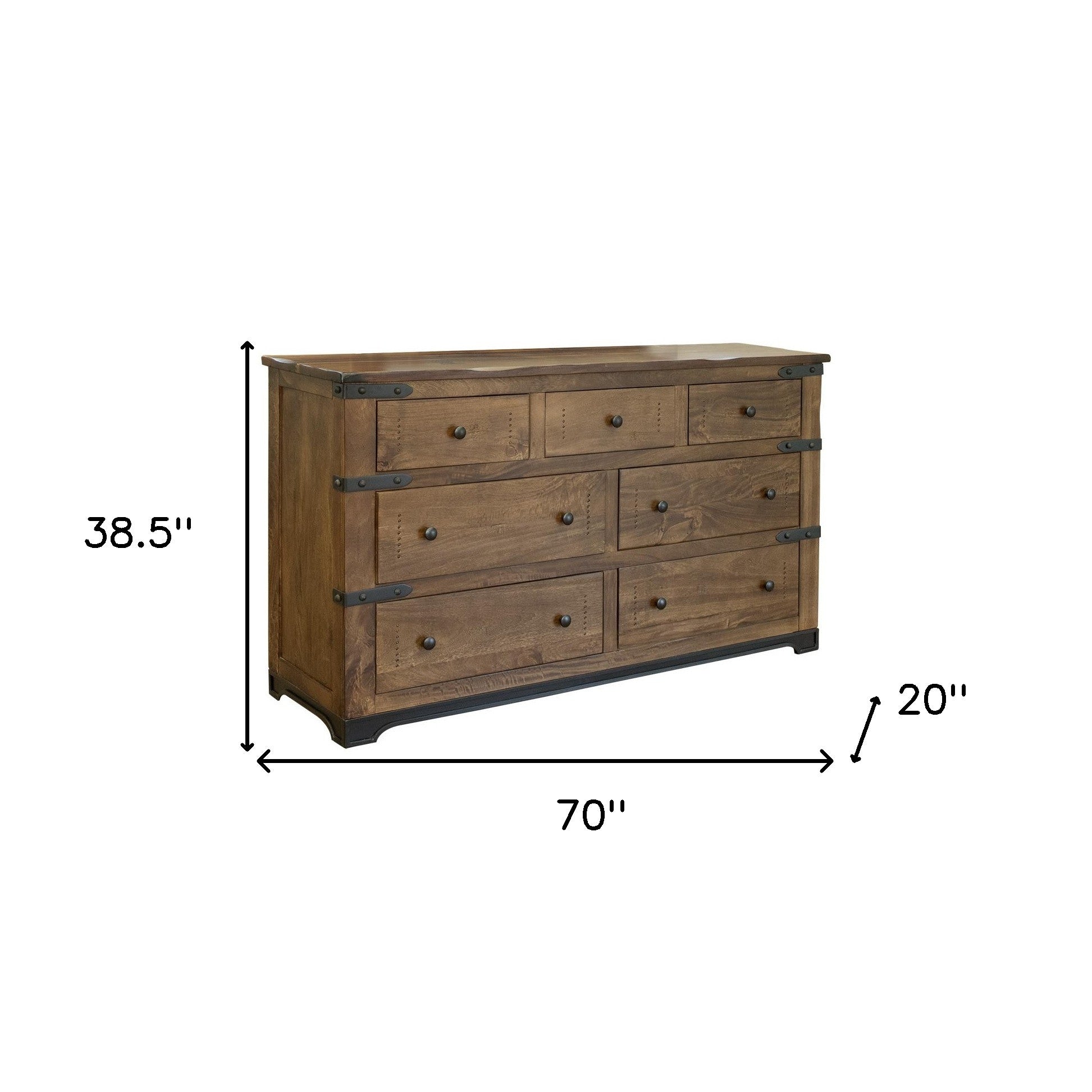 70" Natural Solid Wood Seven Drawer Triple Dresser