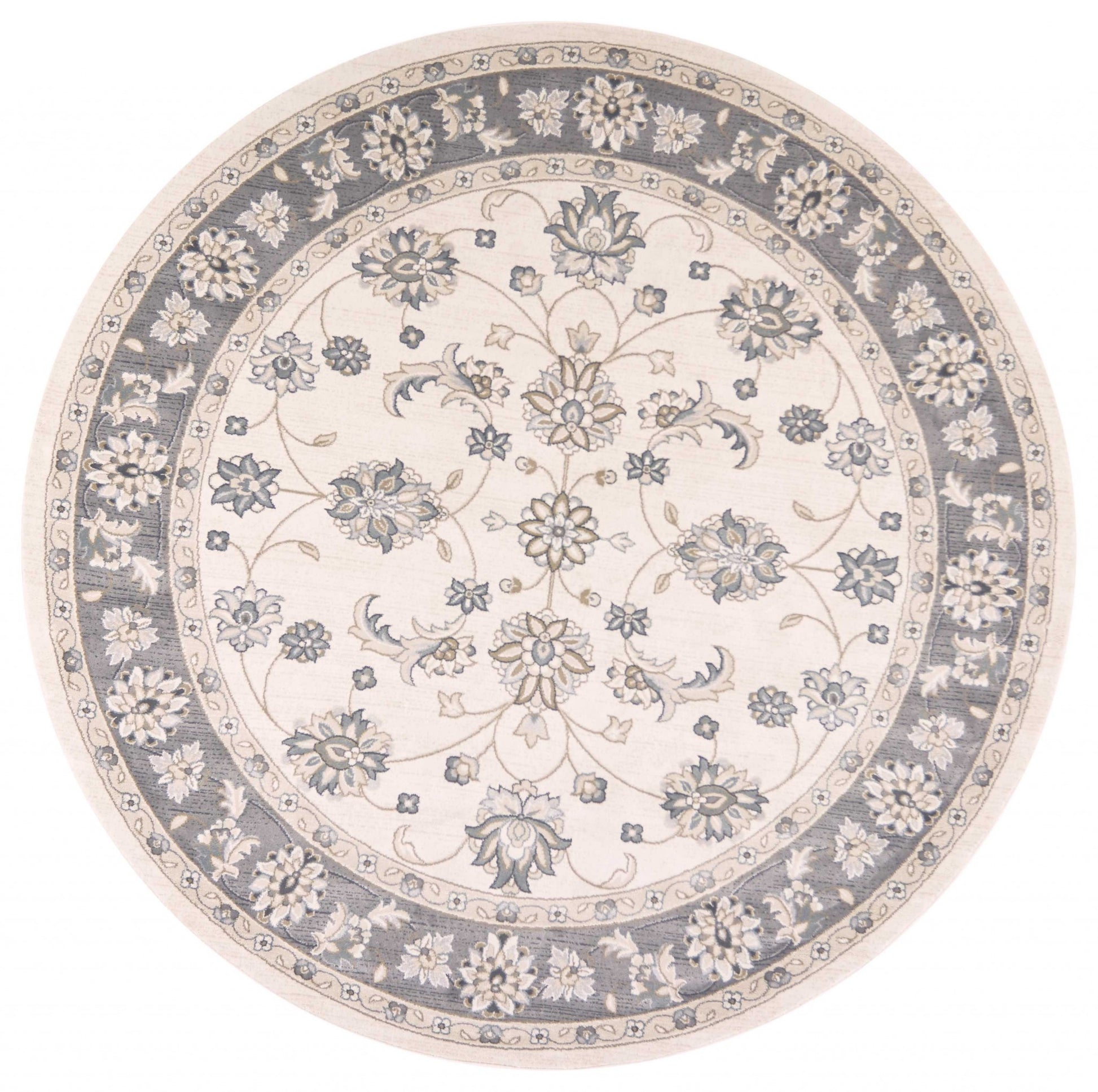 8' Ivory Grey Floral Round Indoor Area Rug