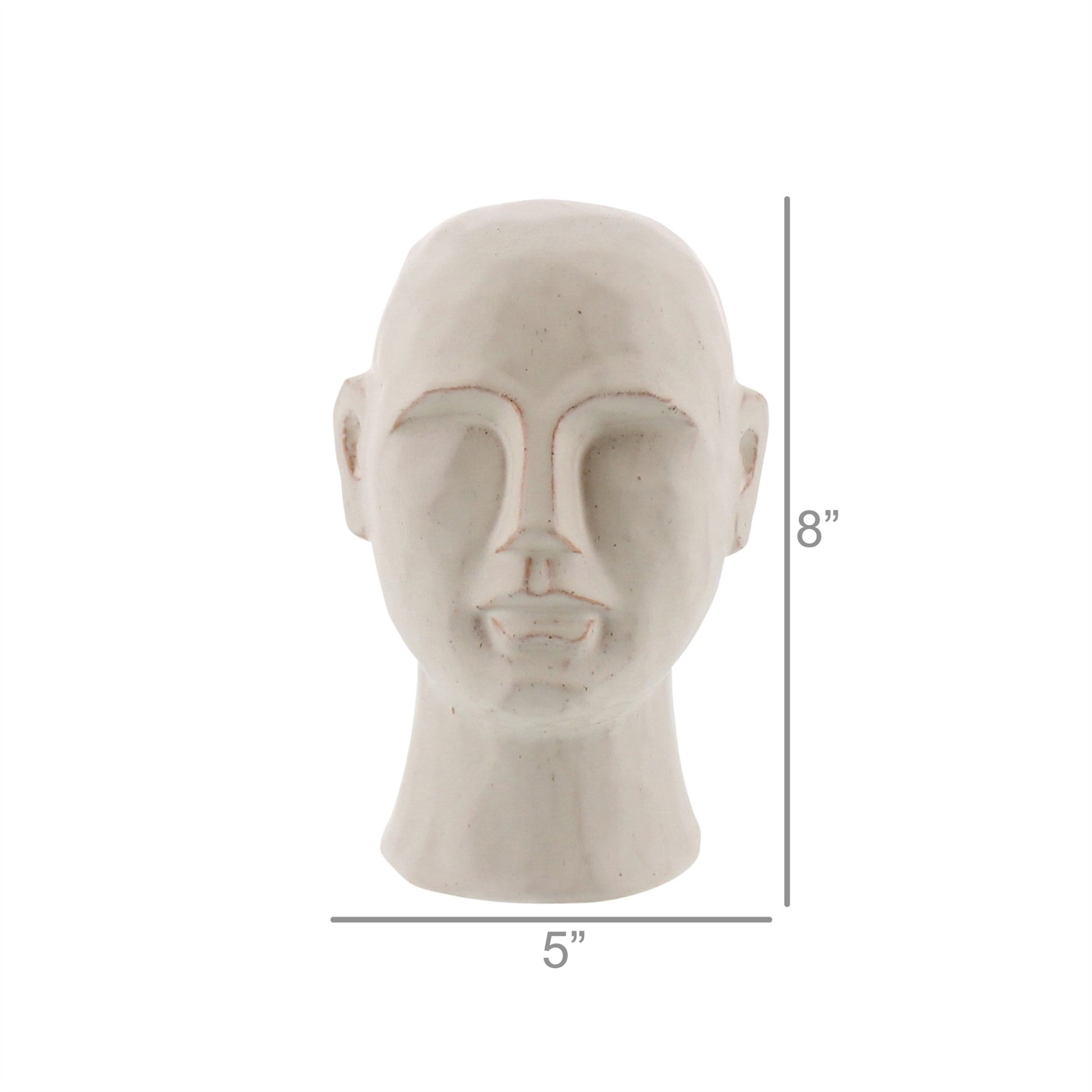 Adorn your space with this with 8" Matte White Ceramic Bust Decorative Sculpture to add something unique and updated to your decor. You will make a bold statement with this decorative accent. The chiseled geometric features of this creamy speckled white artistic ceramic bust will lend a mindful expression to your desk, bookshelf, mantle, or console table. 8" x 5" x 5"
