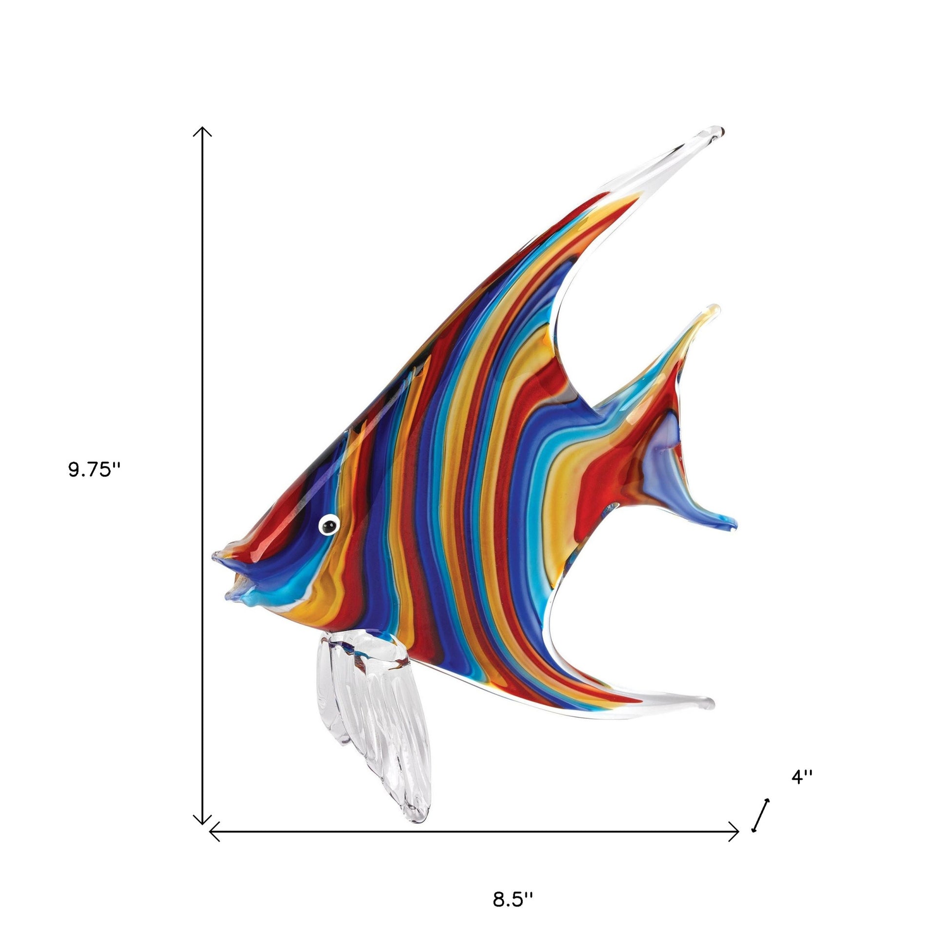Enrich your home with this sophisticated and fashionable tropical fish. Its style will be the ideal decoration for your rooms, and make an amazing piece of eye candy for you. This tropical fish is a made from high quality glass, which also shows off a and colors. You want your piece durable too, and that’s exactly what you get with this stunning tropical fish. It's made from all natural, environmentally sustainable, components. As for measurements, they are 8.5” for height, 4” for width, and 9.75” for depth, and it weighs 6 pounds. If you want a practical, gorgeous, and long-lasting tropical fish, this is the one for you.