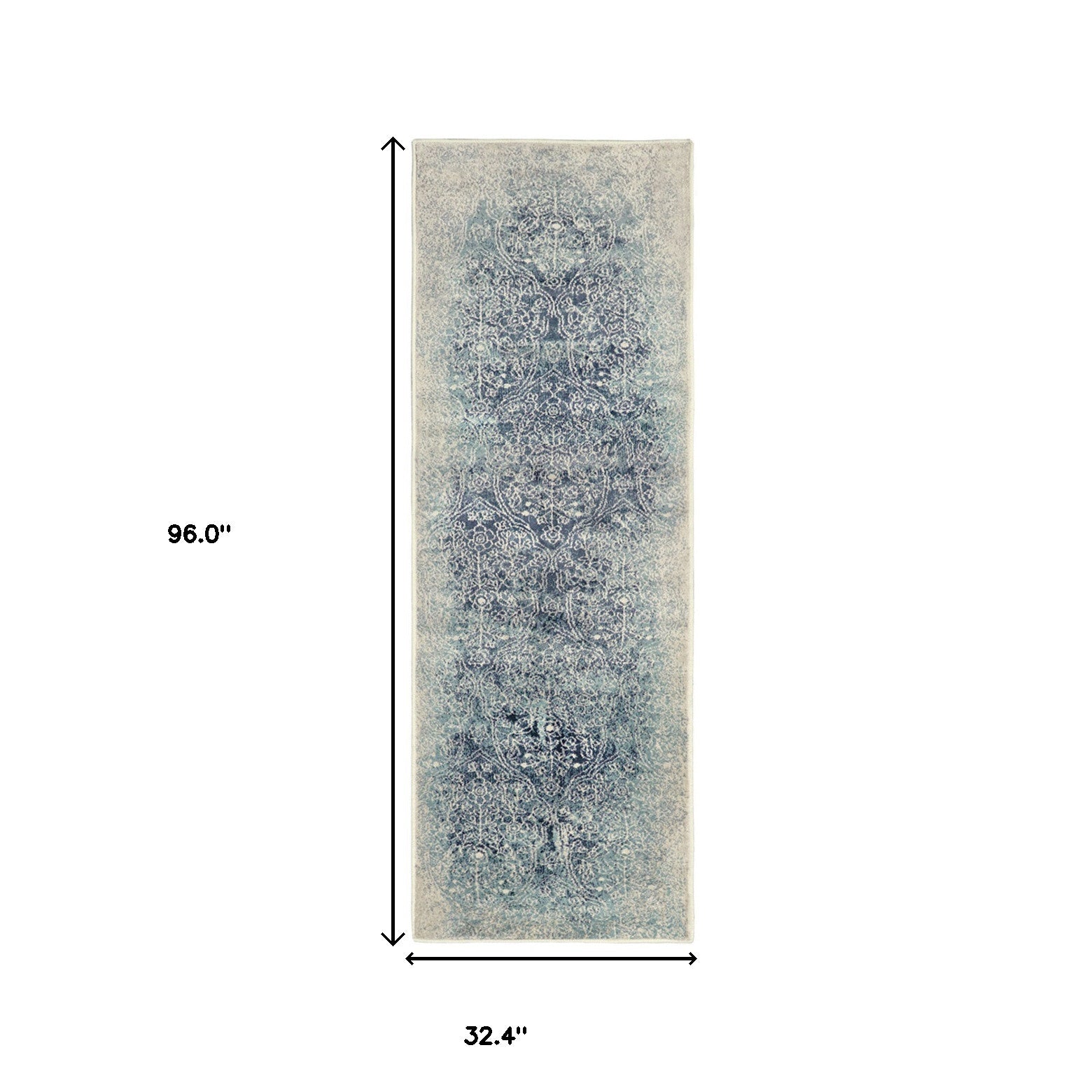 8' Navy Blue Medallion Stain Resistant Runner Rug
