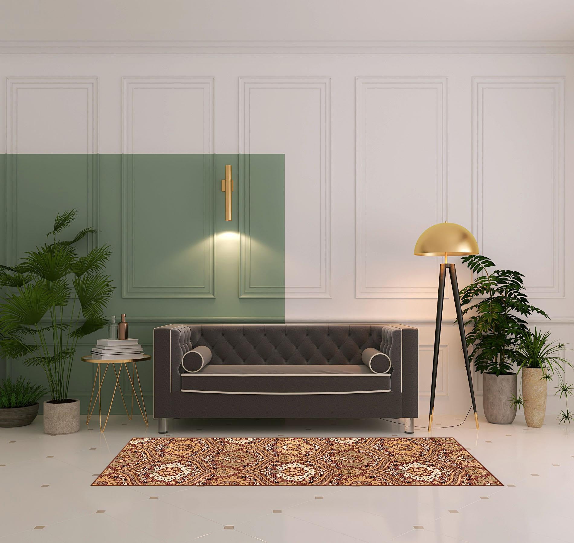 Add some artistry to your room with this 8' runner red floral stain resistant runner rug. This runner shaped rug features a floral design in red to give it visual interest. A classic shape marries with good looking design for your space Ideal for spaces with kids and pets, this rug is stain resistant to help repel stains and spilled liquids. Area Rugs help to give warmth and sense of home to your space. 0.31" H x 32.4" W x 96" D