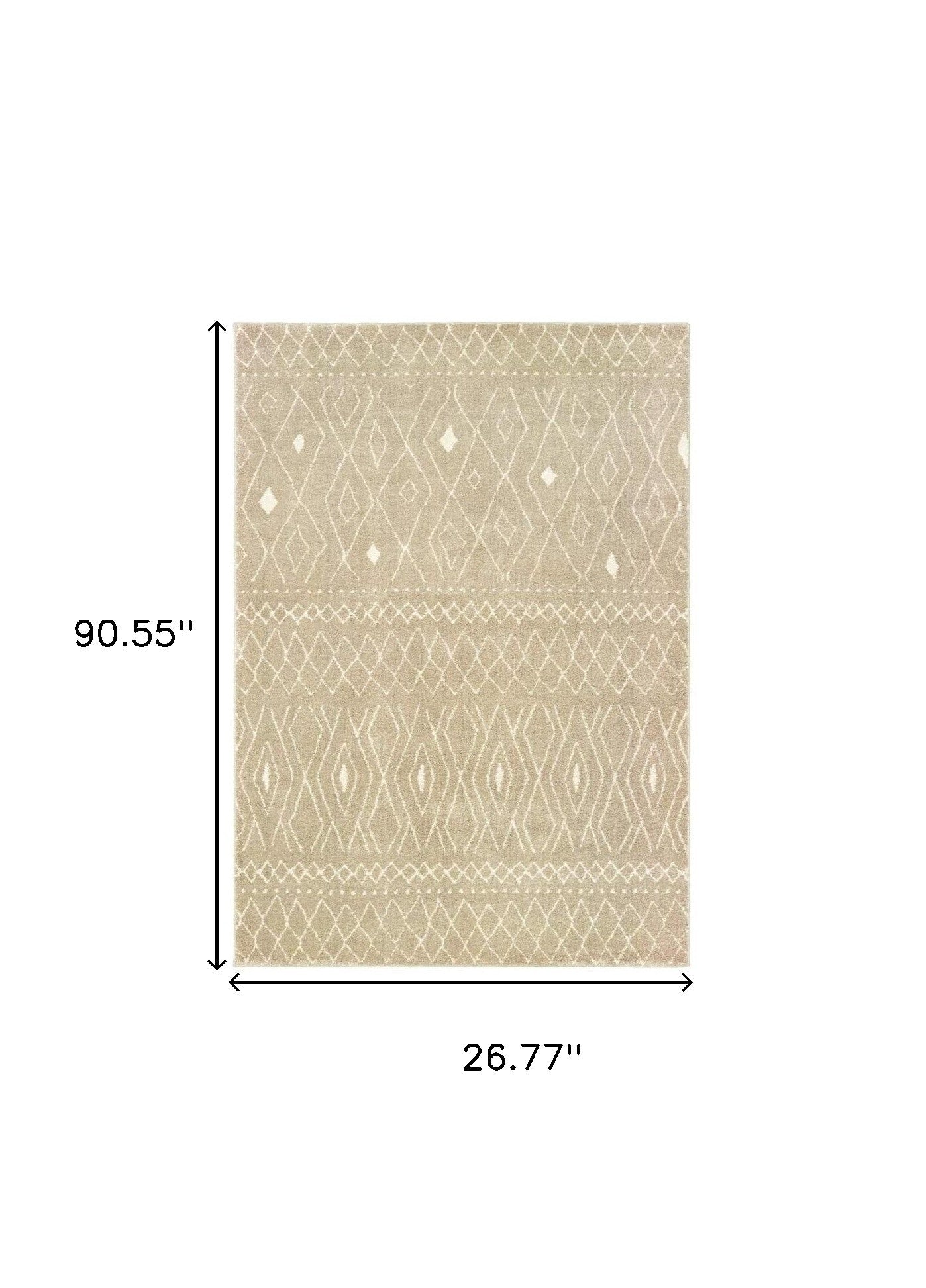 8' Sand And Ivory Geometric Power Loom Runner Rug