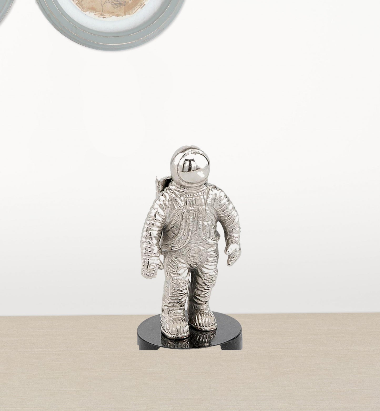 Keywords | Astronaut sculpture, man on the moon, space accent piece, Black marble base, table top accessory |