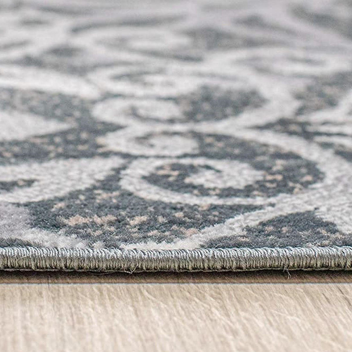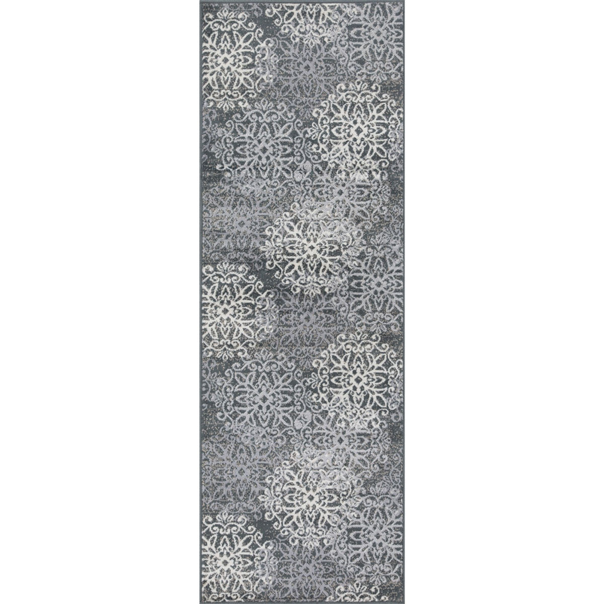Set an inviting tone in your space with this 8' slate and gray medallion power loom stain resistant runner rug. This runner shaped rug features a medallion design in slate and gray to give it visual interest. A classic shape marries with good looking design for your space This superior Turkish rug represents the highest quality and is built to last. Ideal for spaces with kids and pets, this rug is stain resistant to help repel stains and spilled liquids. Place this area rug against a hardwood or tile floor and it will enliven your living space with style and sophistication. 0.31" H x 32.4" W x 96" D