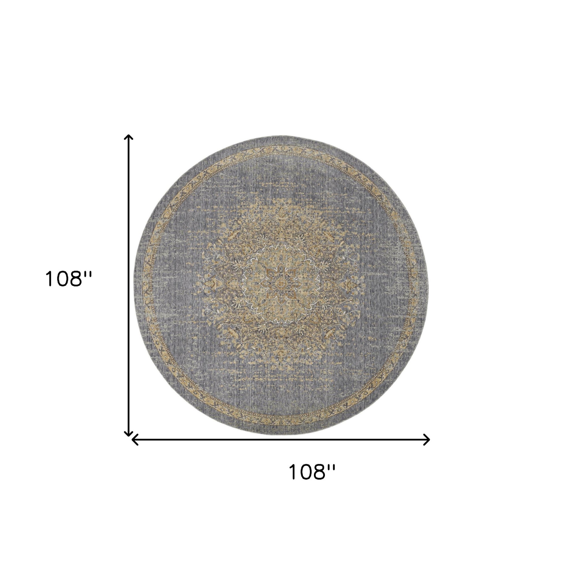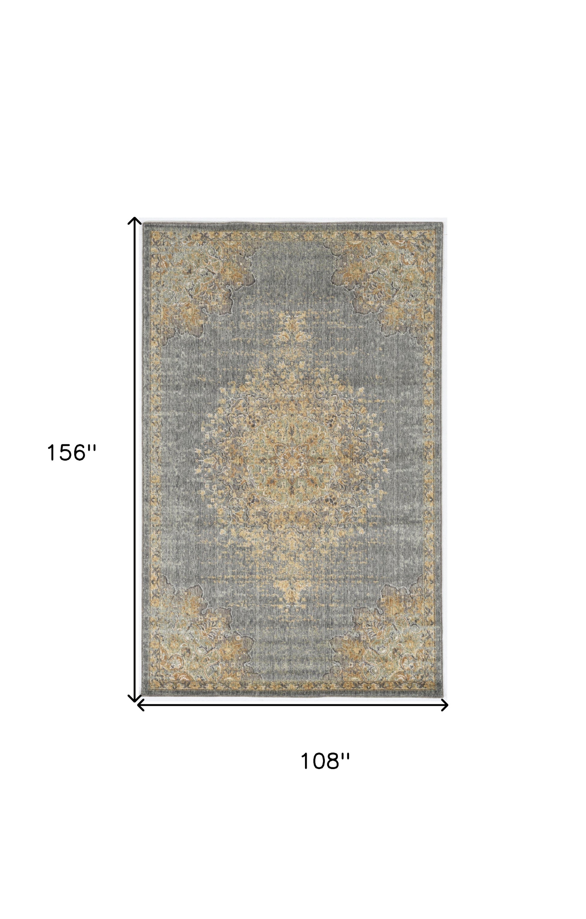8' Slate Grey Machine Woven Vintage Traditional Indoor Runner Rug