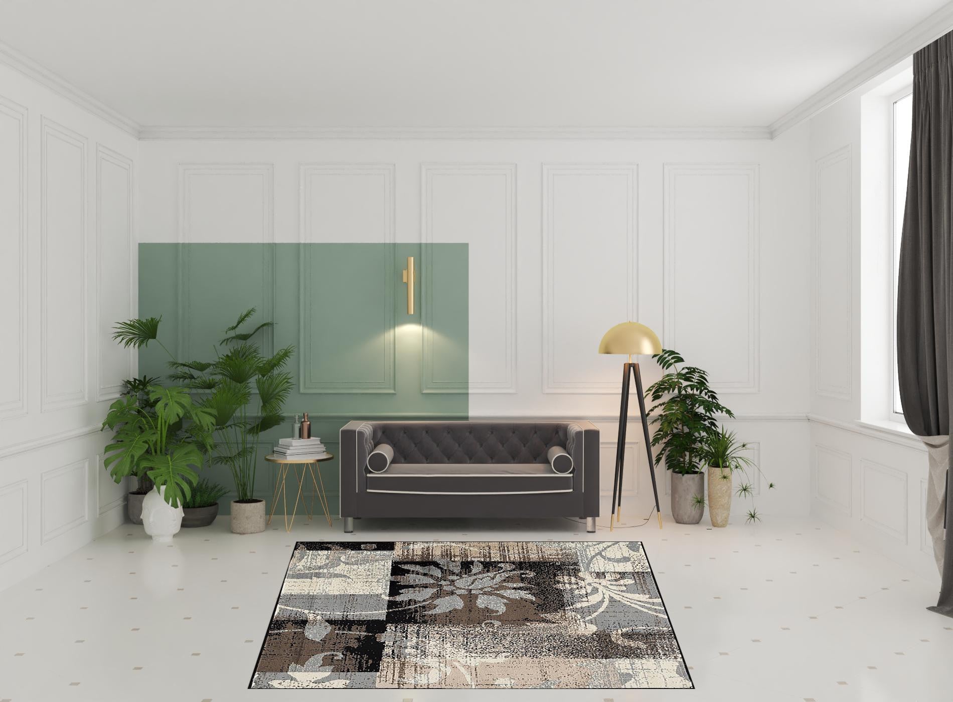 Set an inviting tone in your space with this 8' square beige and gray square floral power loom distressed stain resistant area rug. This geometric square shaped rug features a floral pattern in beige and gray that combines a good looking print with a unique and updated shape. The mix of shape, color, and design gives this rug refreshing visual interest. Made in Turkey, this rug offers high quality combined with good looking designer sensibilities. Ideal for spaces with kids and pets, this rug is stain resistant to help repel stains and spilled liquids. Place this area rug against a hardwood or tile floor and it will enliven your living space with style and sophistication. 0.31" H x 96" W x 96" D